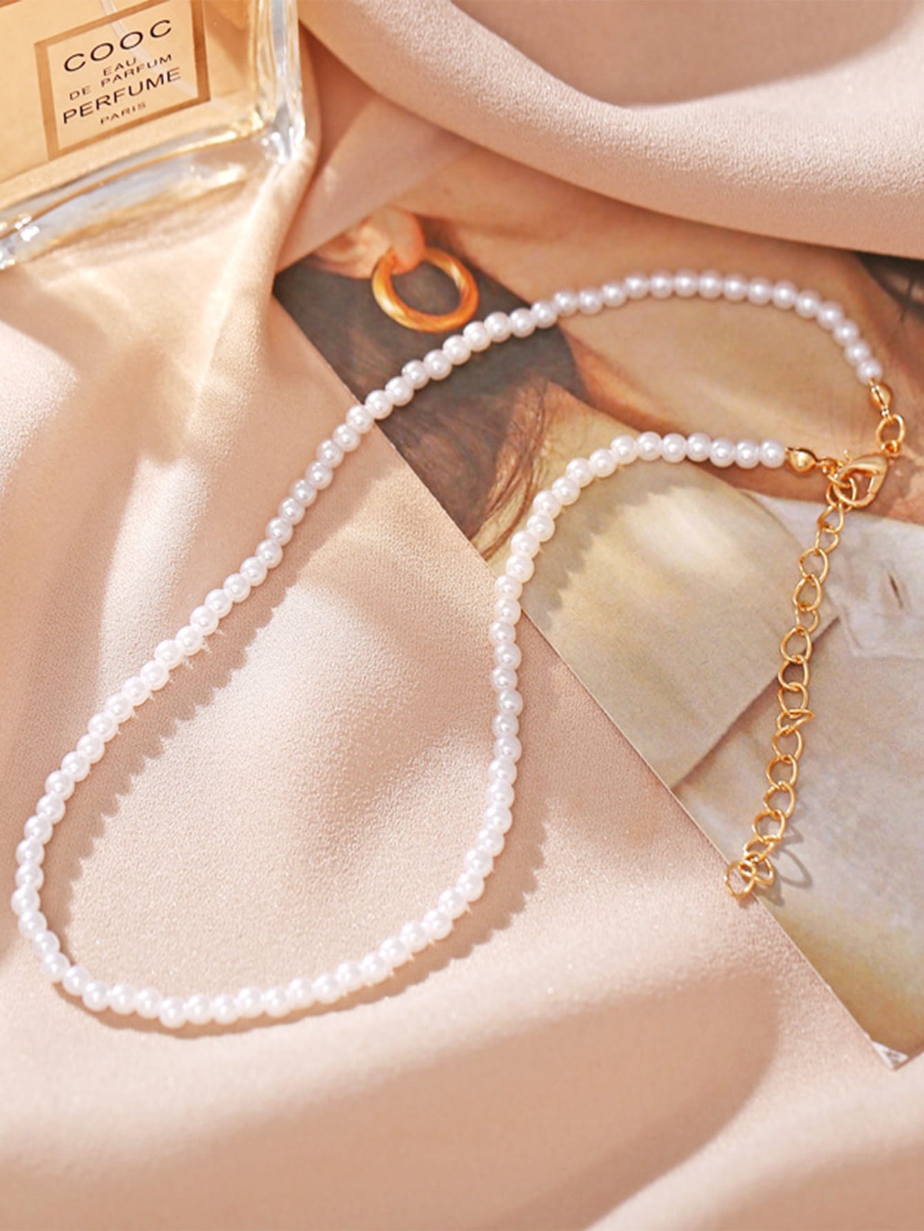 Faux Pearl Beaded Chain Necklace