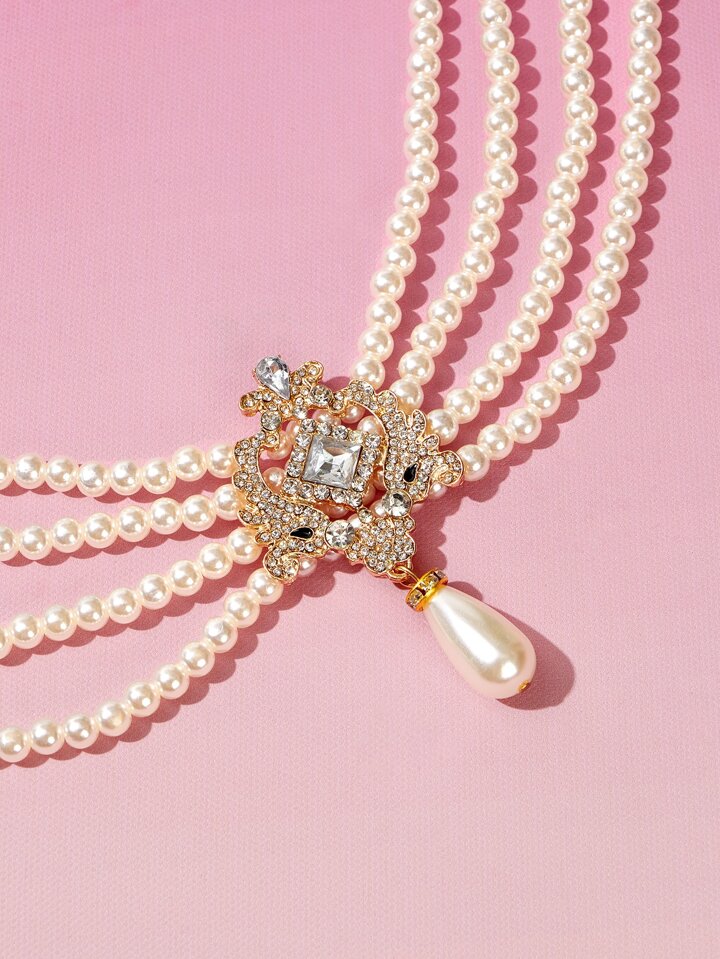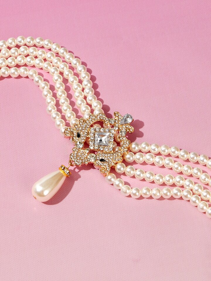 Faux Pearl & Rhinestone Decor Necklace