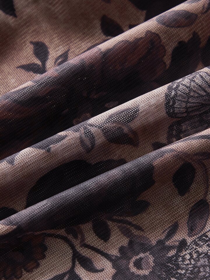 Floral & Butterfly Print Cami Bodysuit