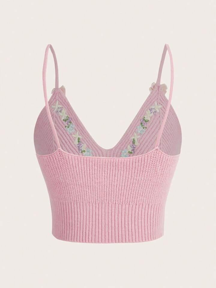 Floral Embroidery Cami Knit Top