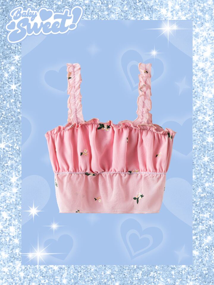 Floral Embroidery Frill Trim Cami Top