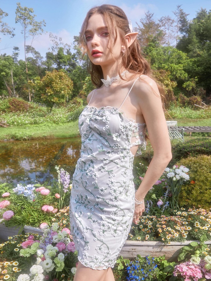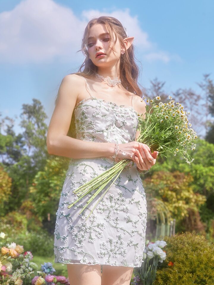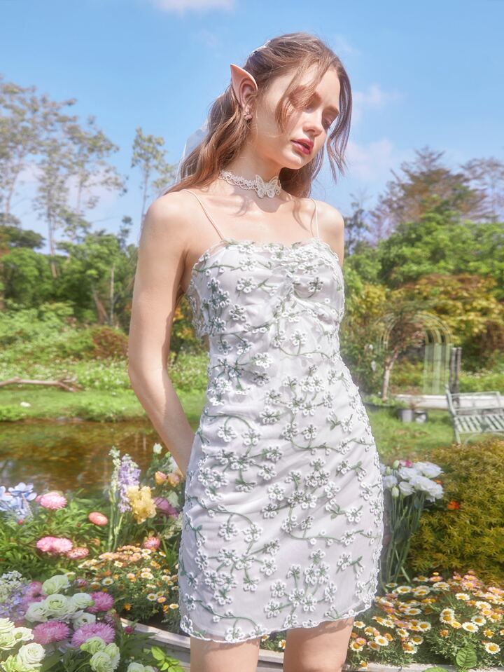 Floral Embroidery Ruched Cami Dress