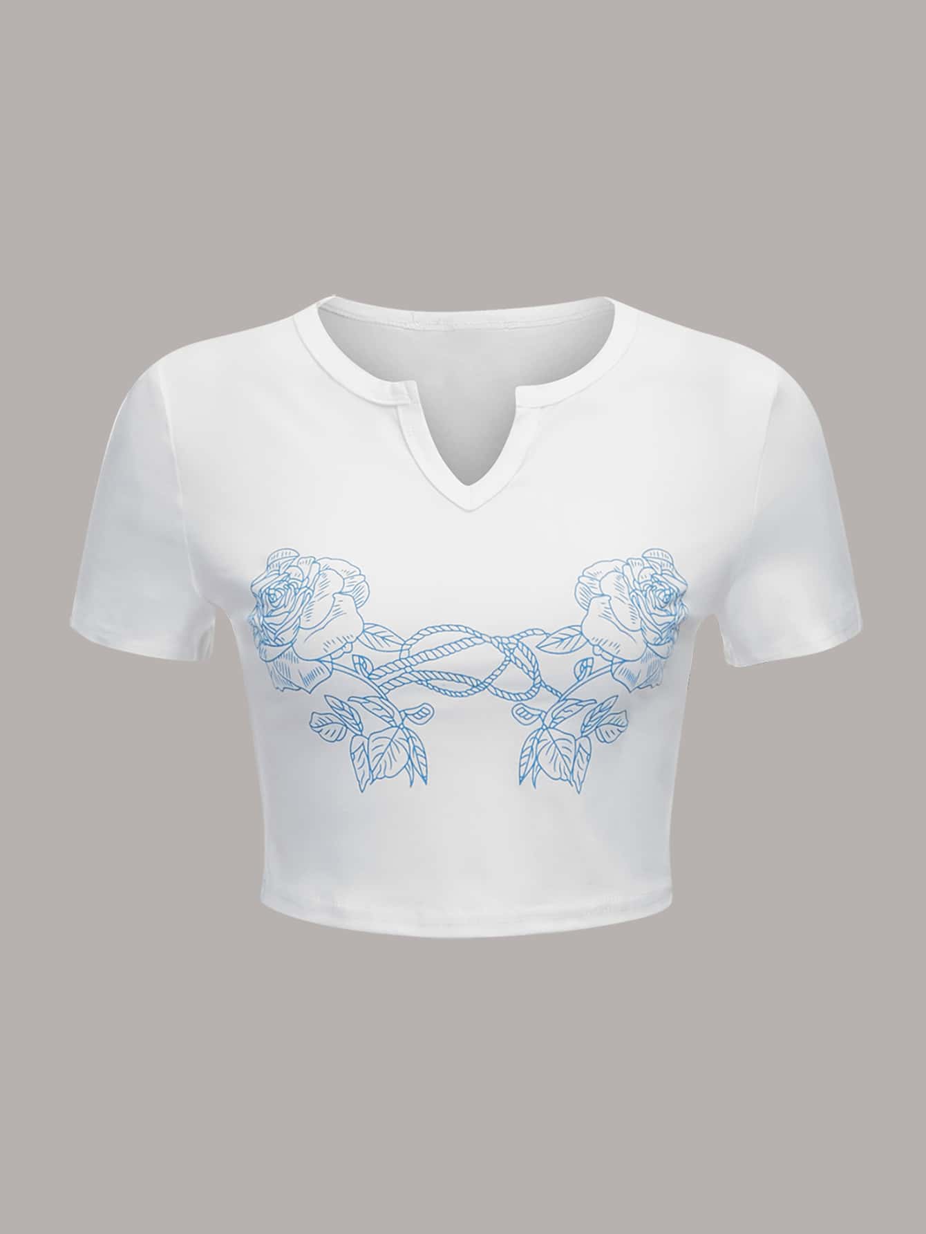 Floral Graphic Notched Neck Crop Tee