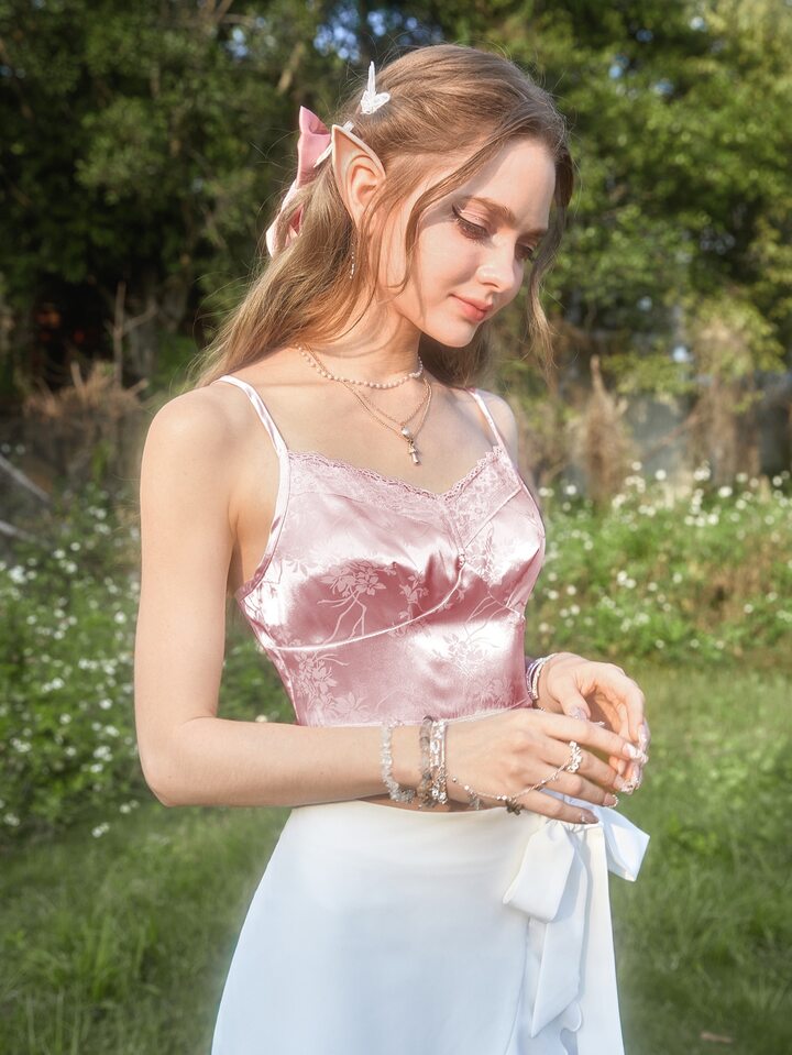 Floral Jacquard Satin Cami Top