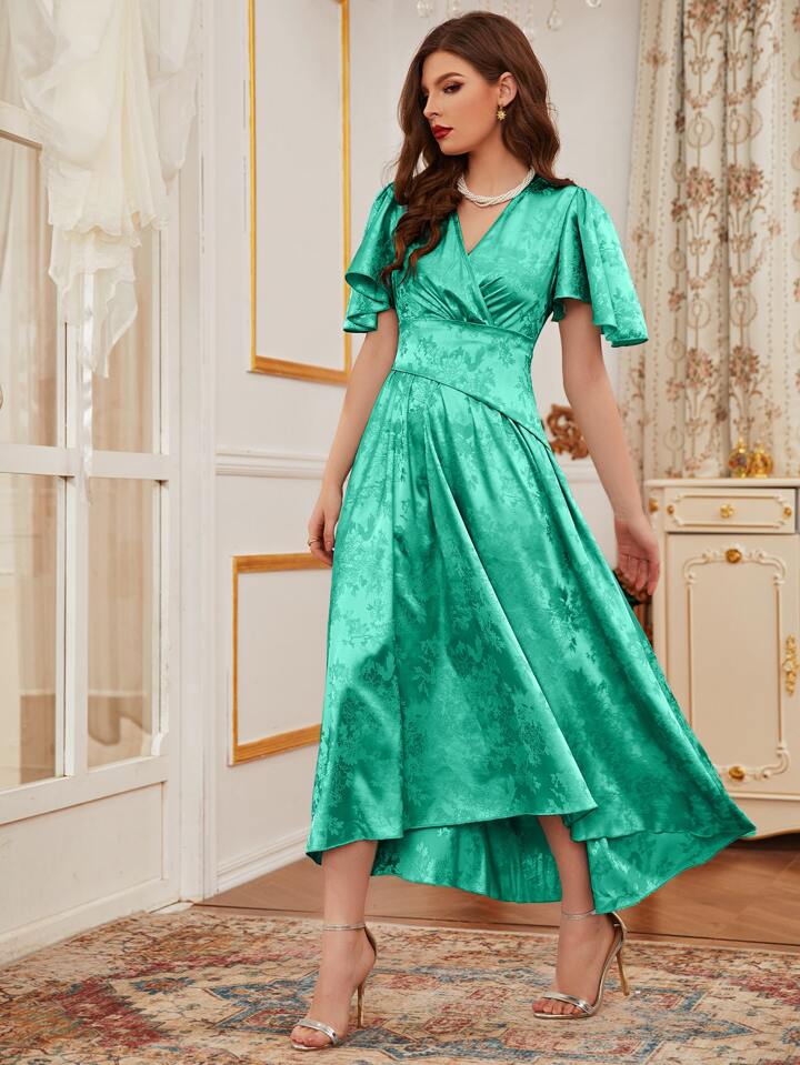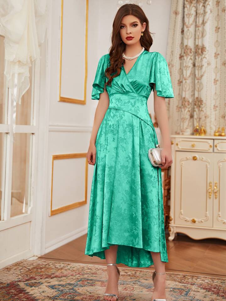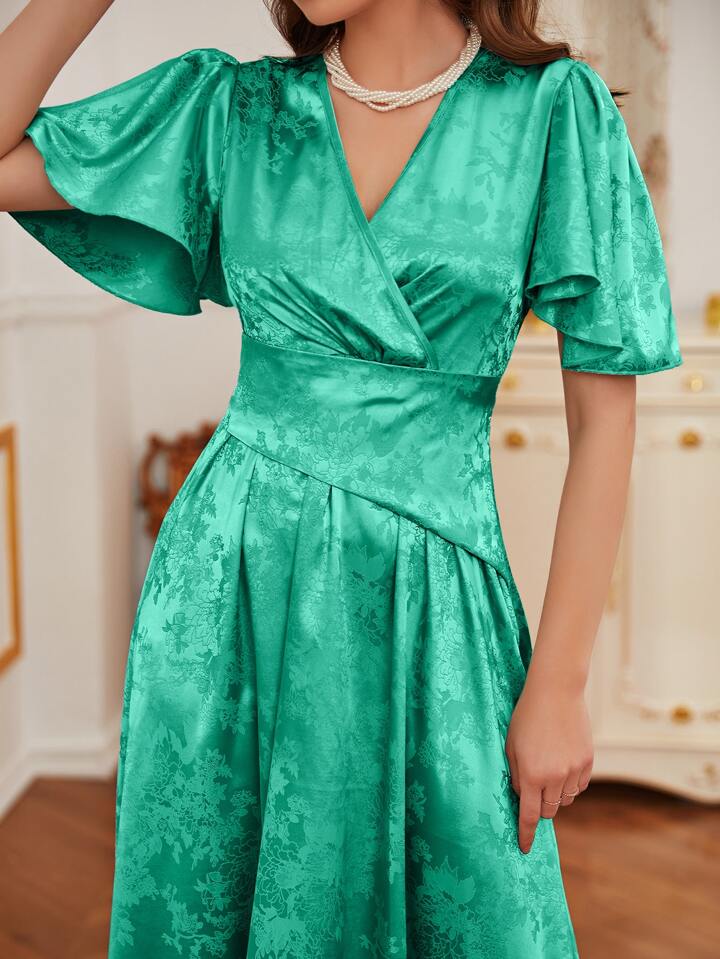 Floral Jacquard Surplice Front Dress