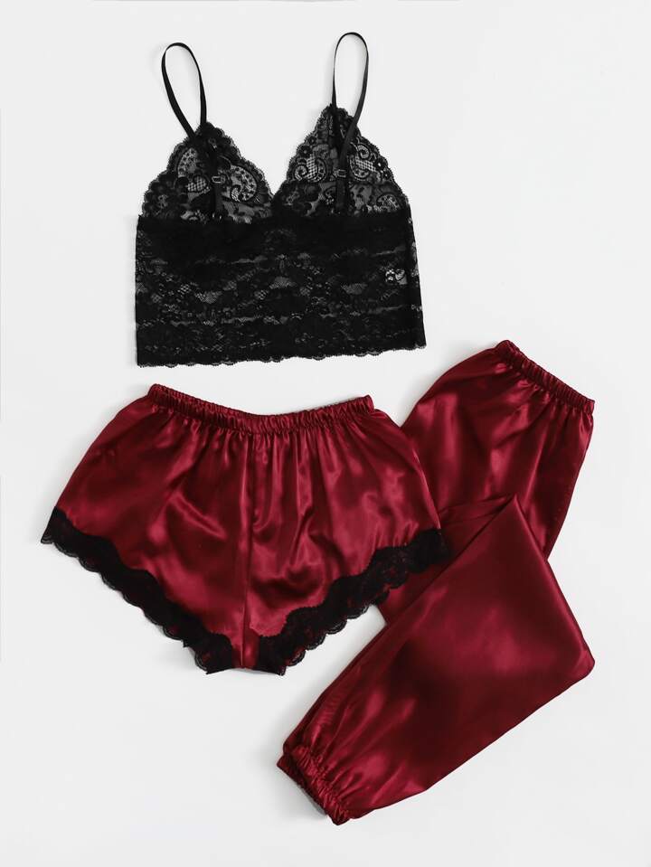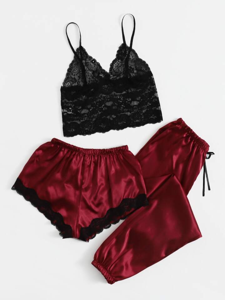 Floral Lace Bralette & Satin Shorts & Pants