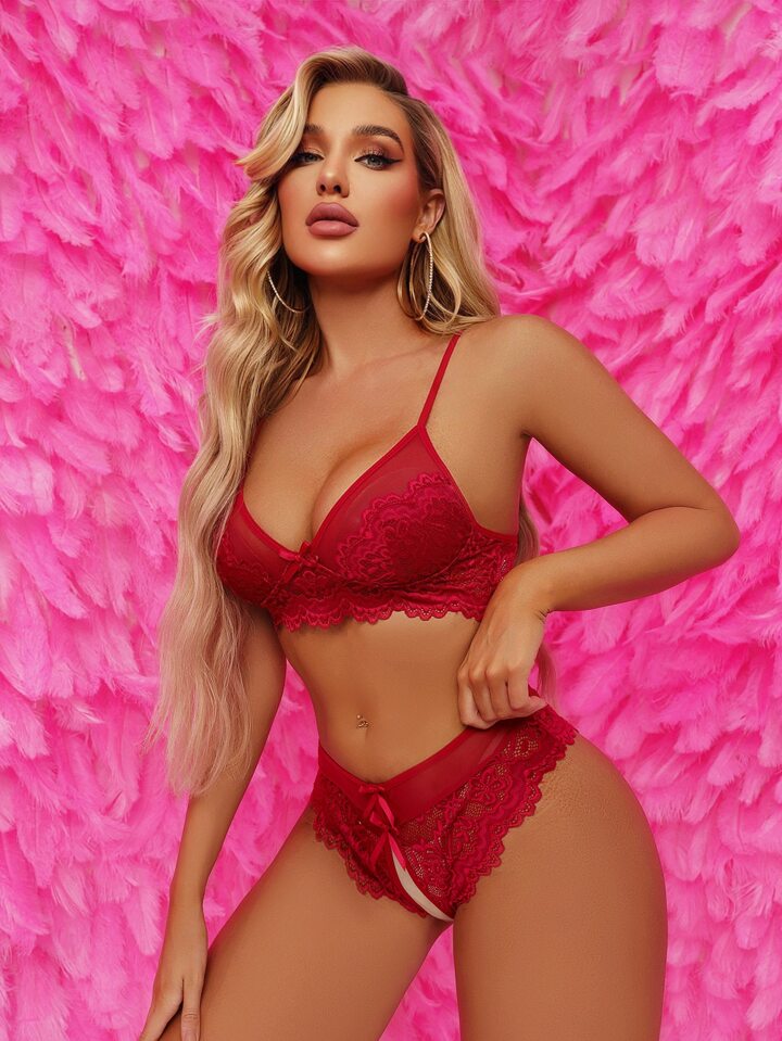 Floral Lace Scallop Trim Crotchless Lingerie Set