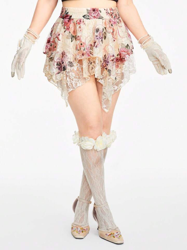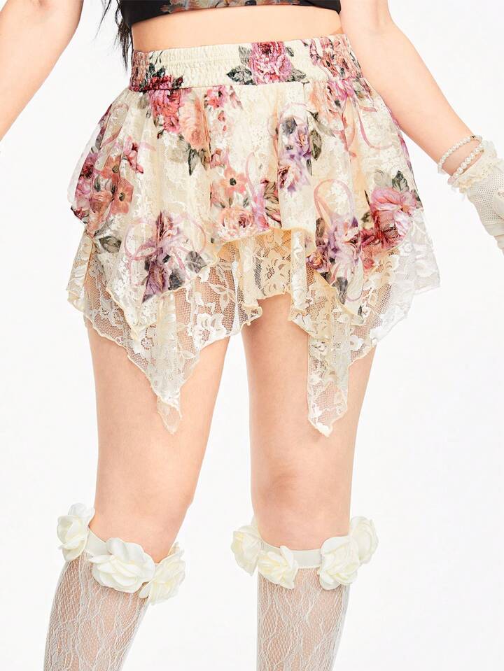 Floral Print Asymmetrical Hem Skirt