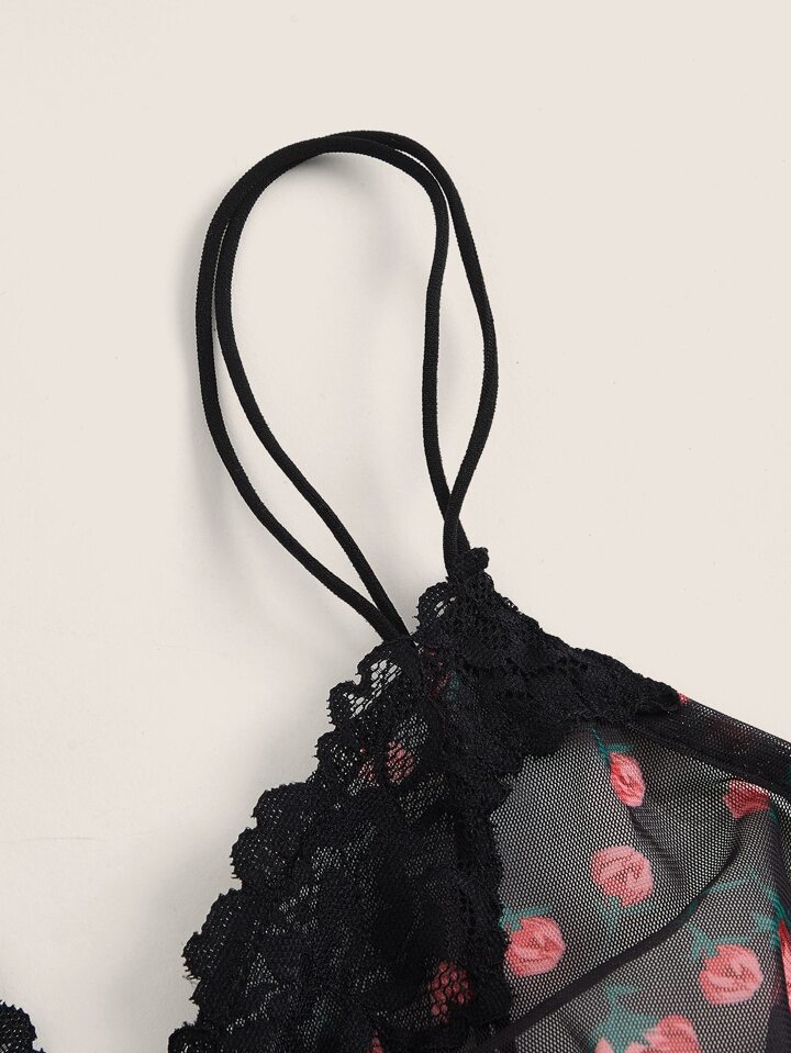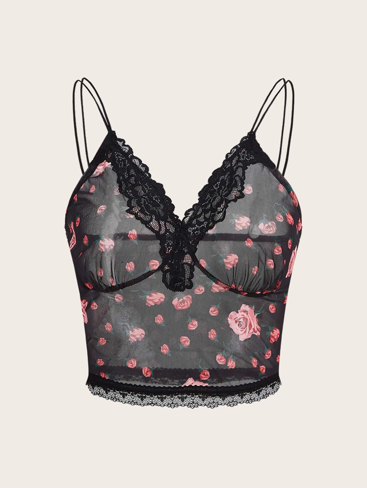 Floral Print Contrast Lace Cami Top
