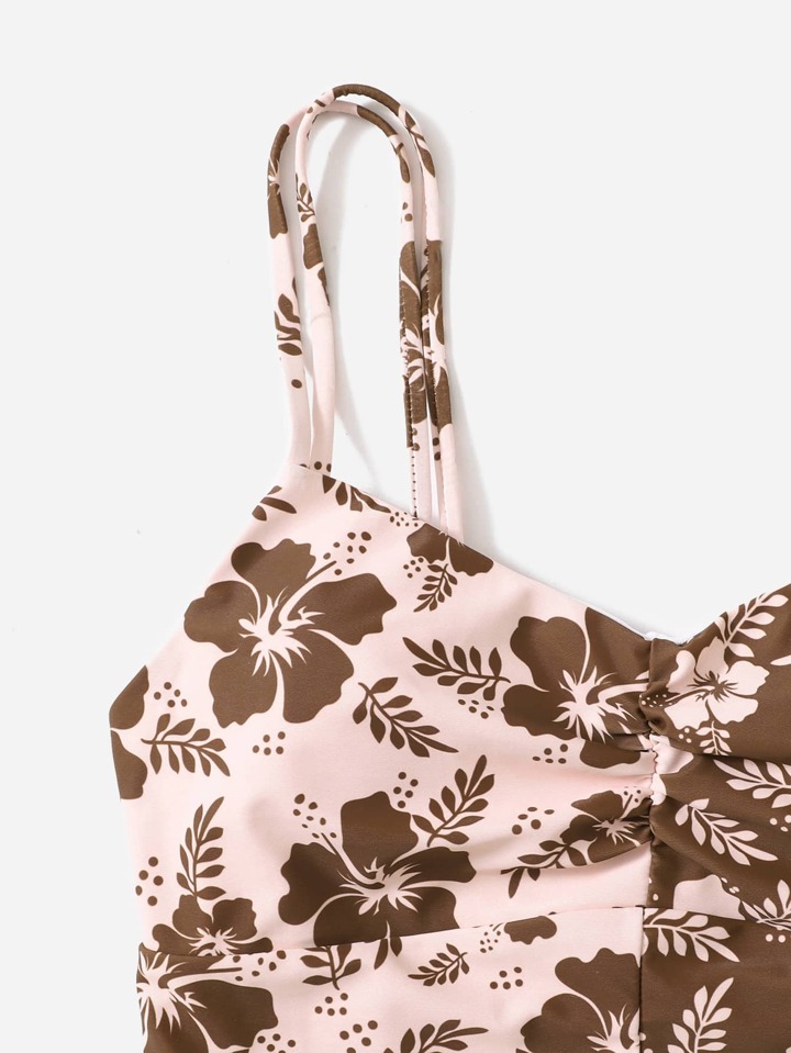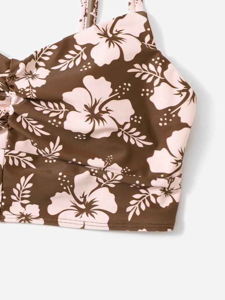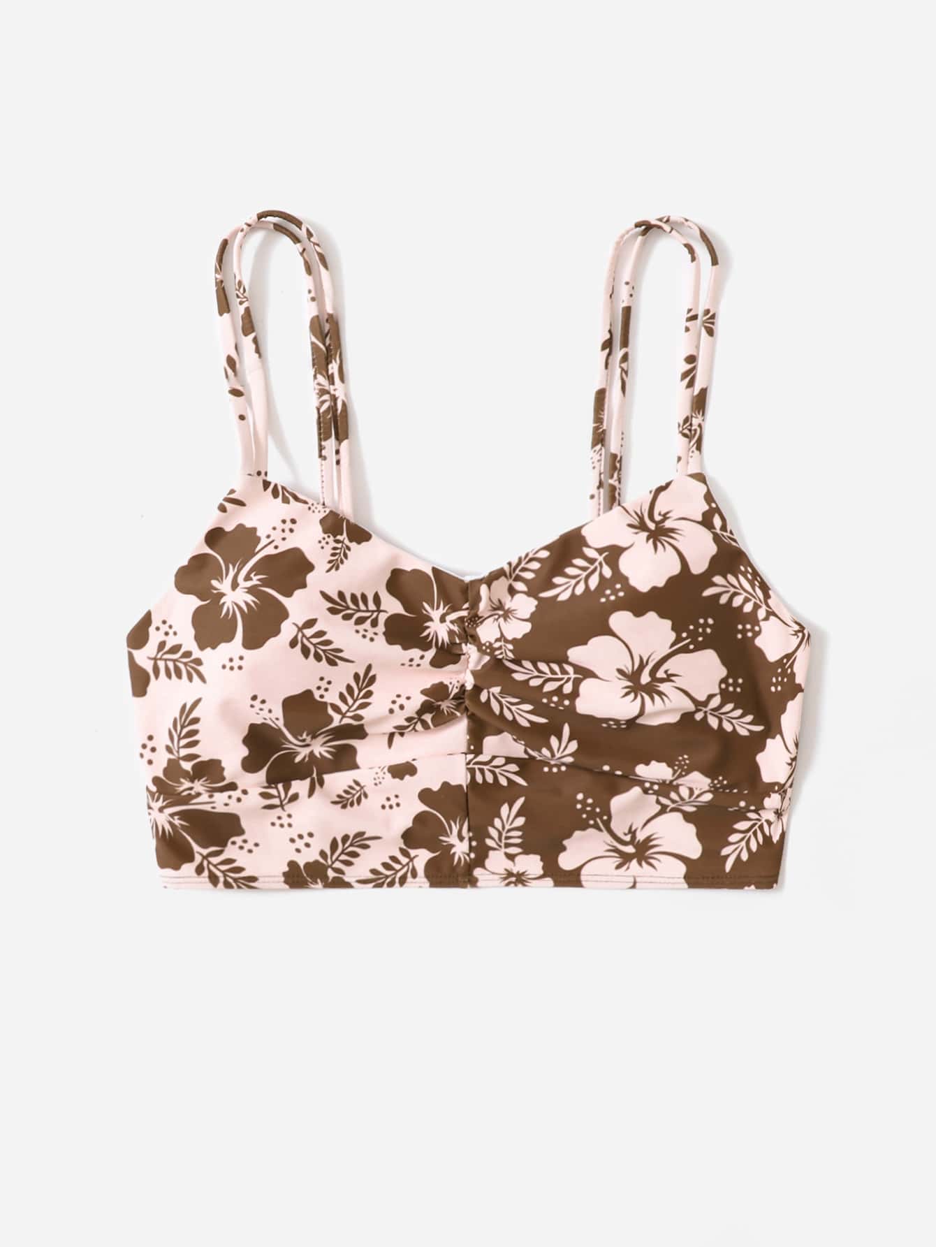Floral Print Double Strap Bikini Top