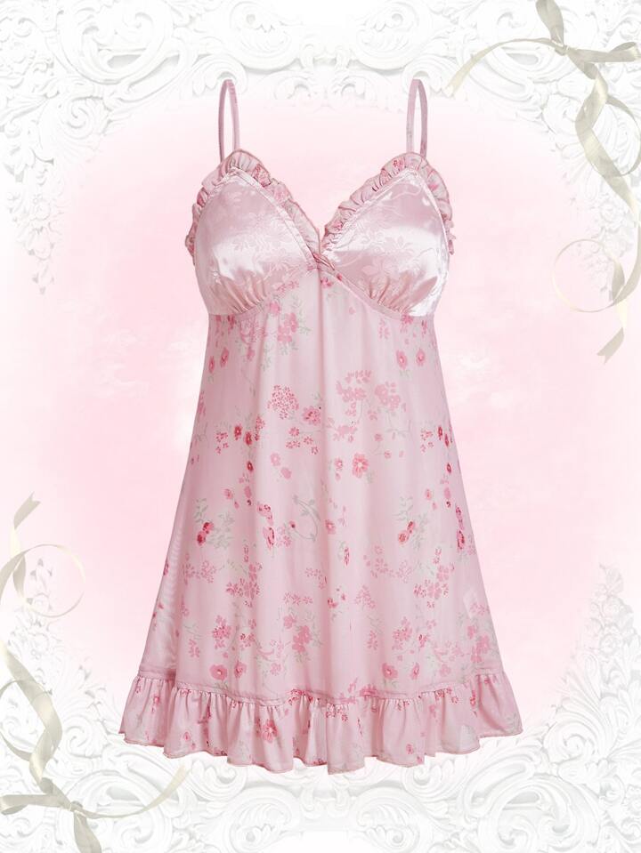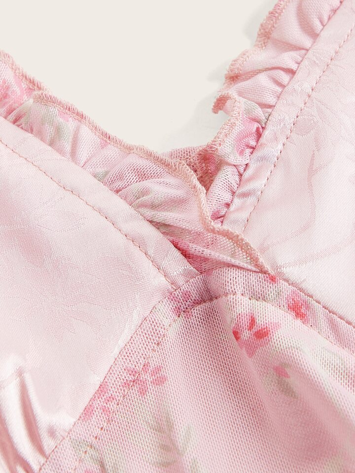Floral Print Frill Trim Sheer Ruffle Hem Cami Dress