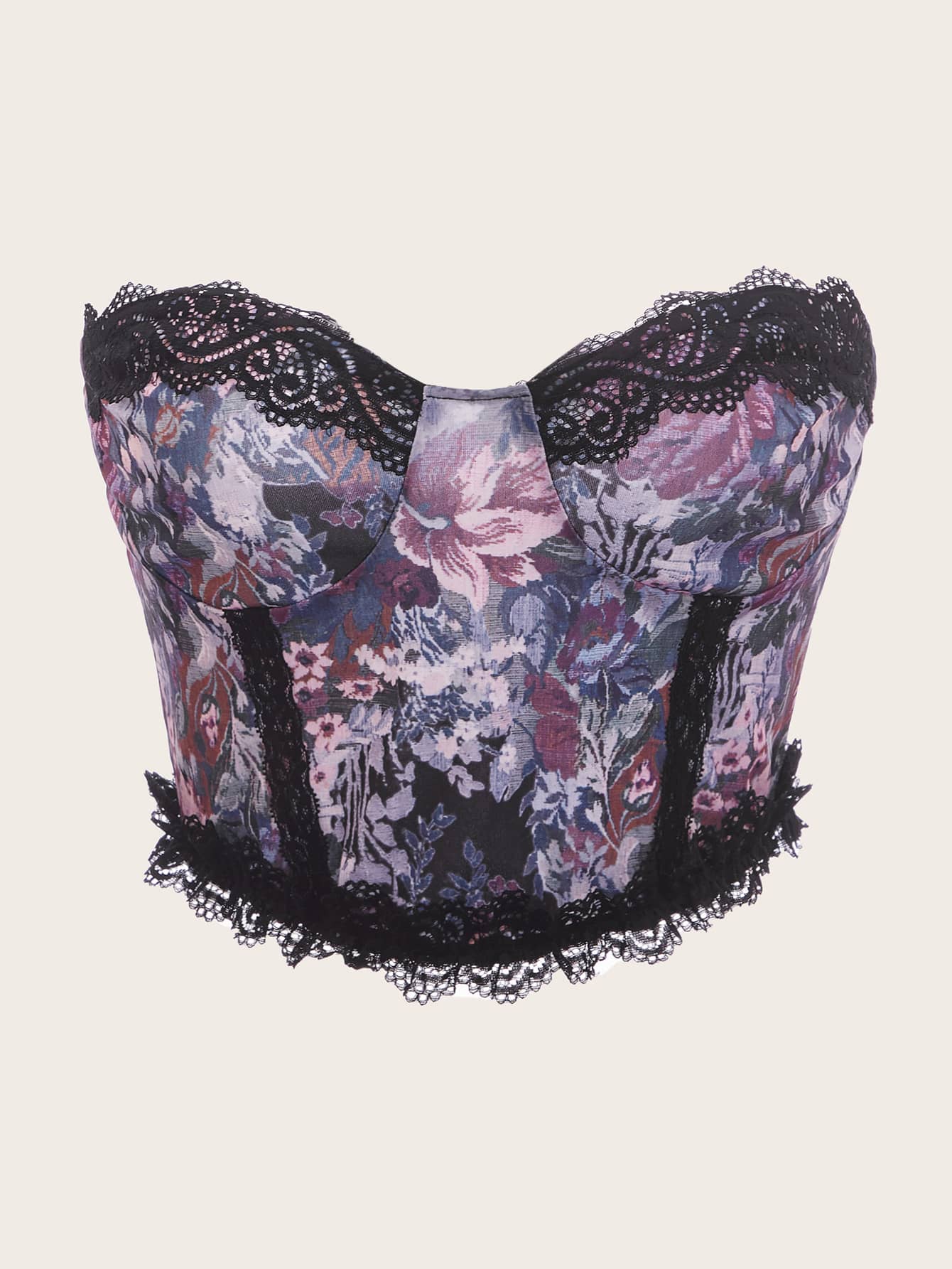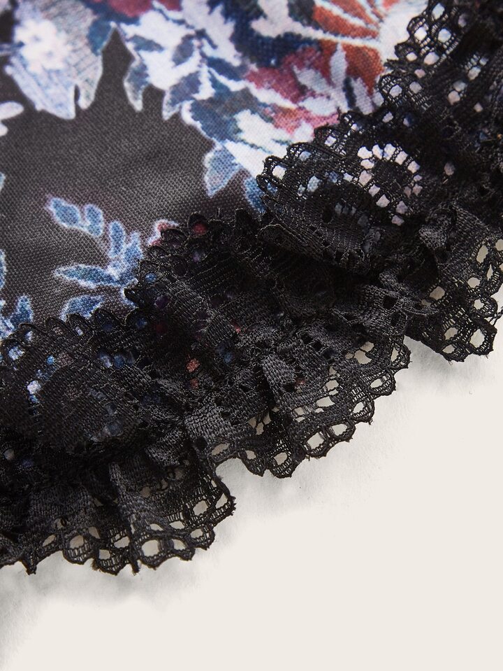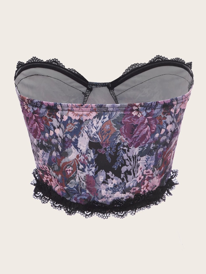 Floral Print Lace Trim Tube Top