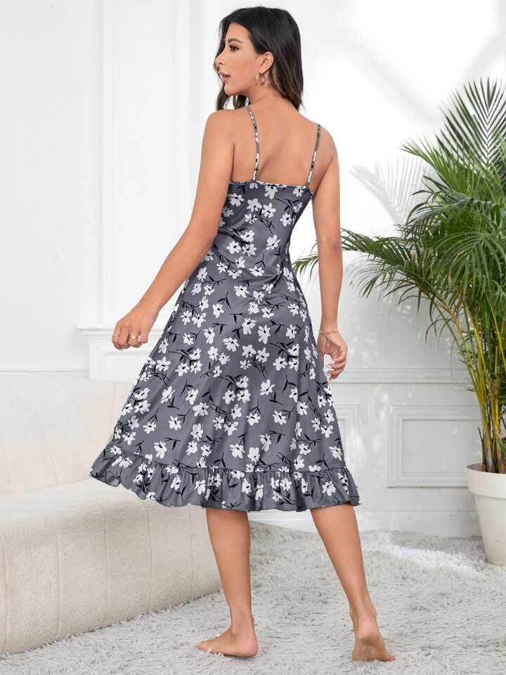Floral Print Ruffle Hem Cami Nightdress