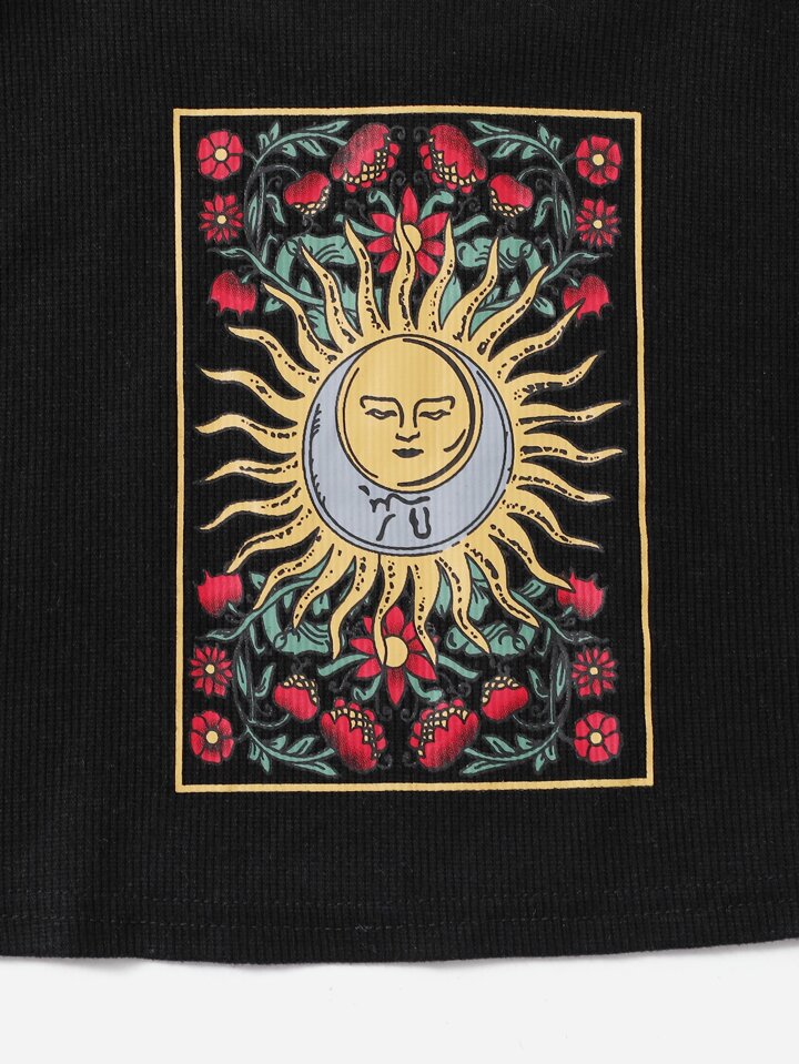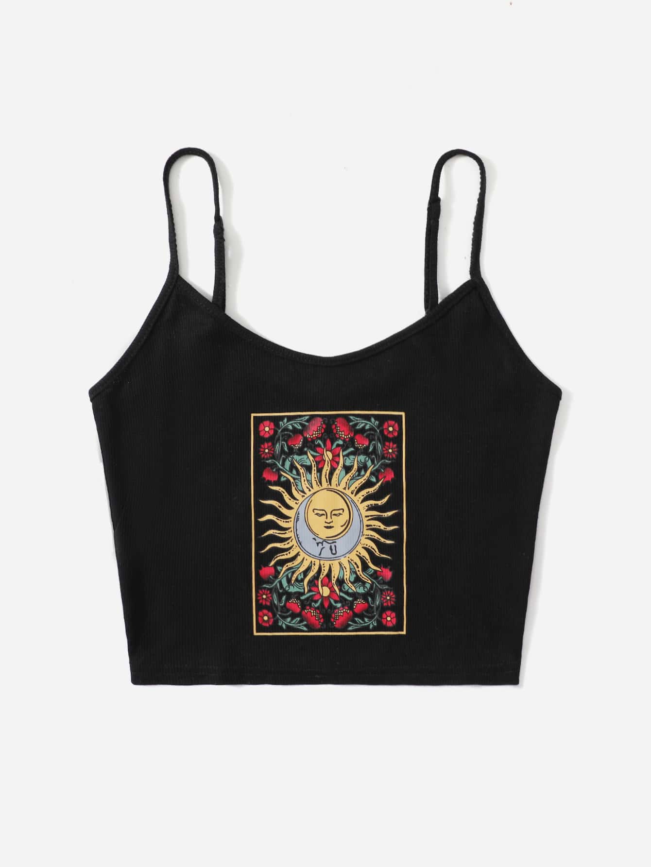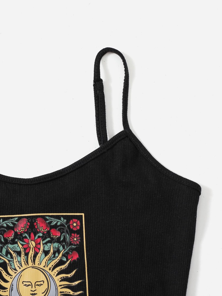 Floral and Graphic Print Rib-knit Cami Top