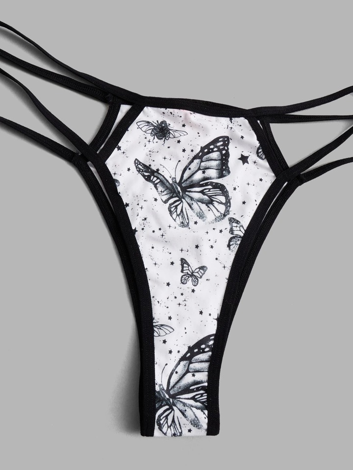 Foonmoneys Goth 3pack Skull & Butterfly Print Thong Set