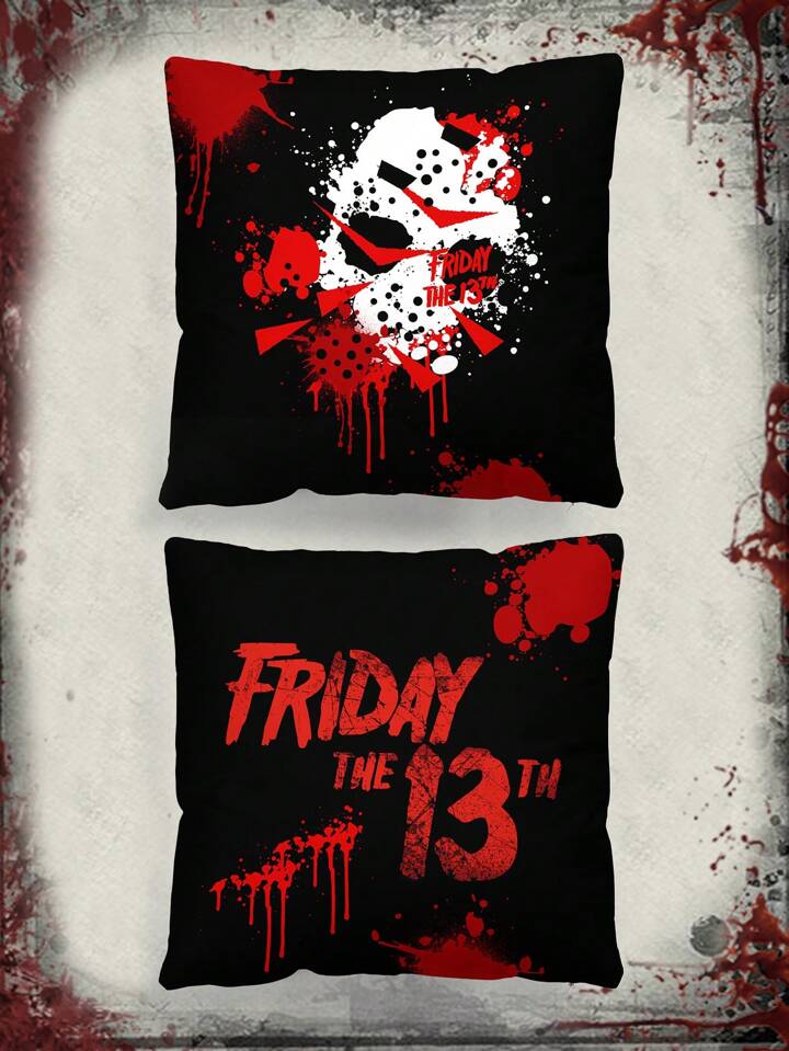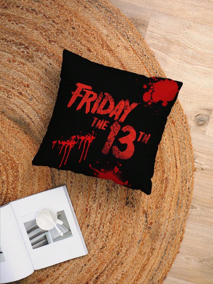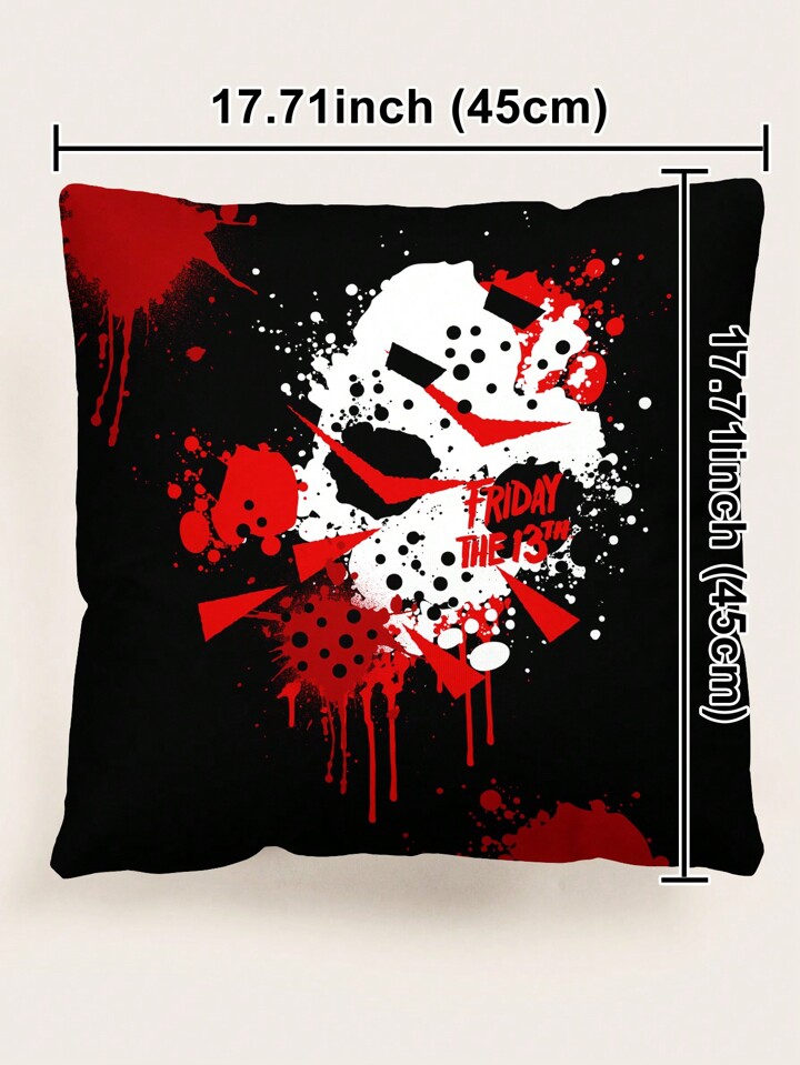 Friday the 13th X ROMWE 1pc Skull & Letter Graphic Cushion Cover Without Filler,Dark Washable Decorative Square Pillowcase