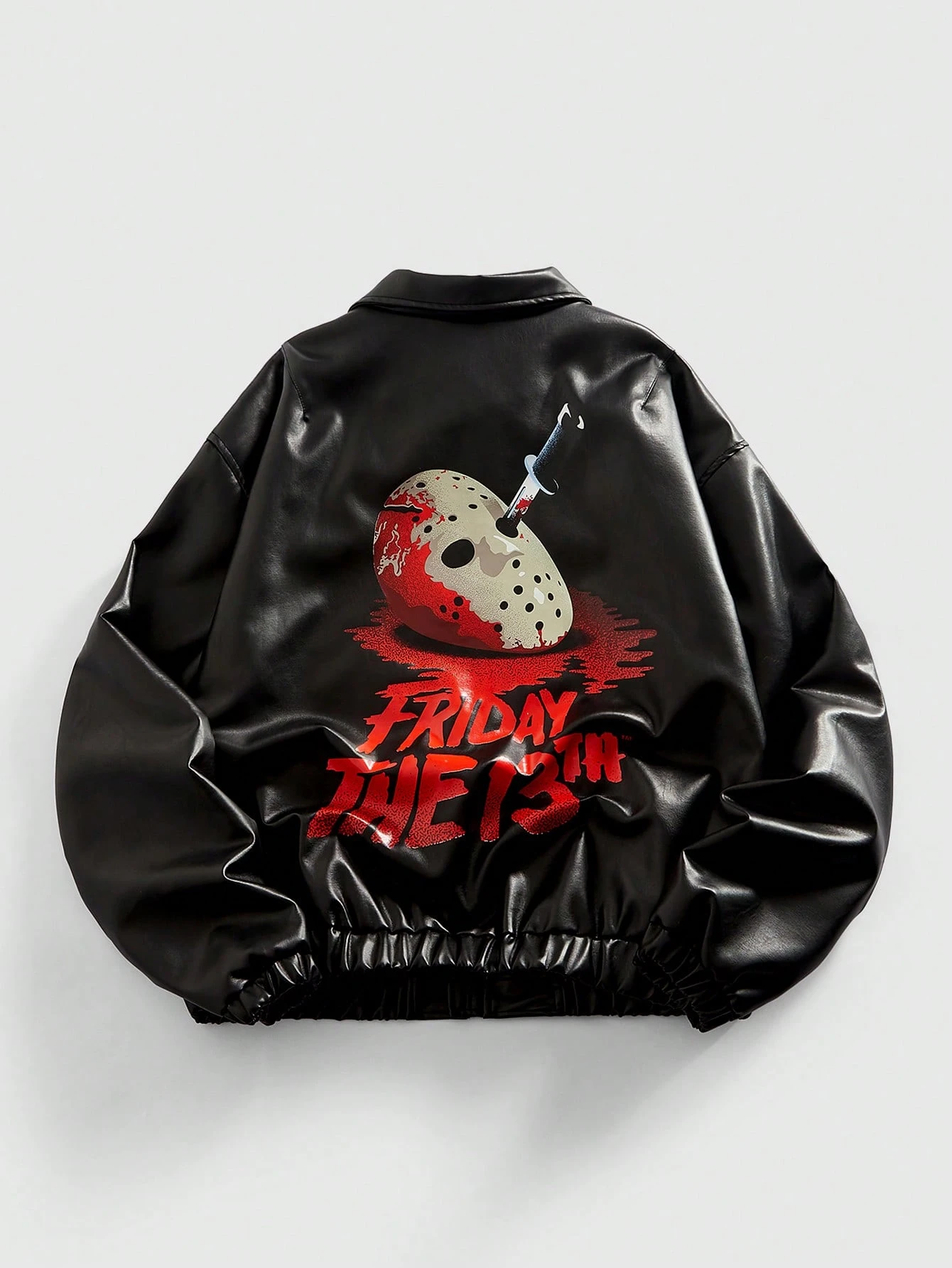 Friday the 13th X ROMWE Men Fall Cool Mask & Letter Graphic PU Leather Jacket