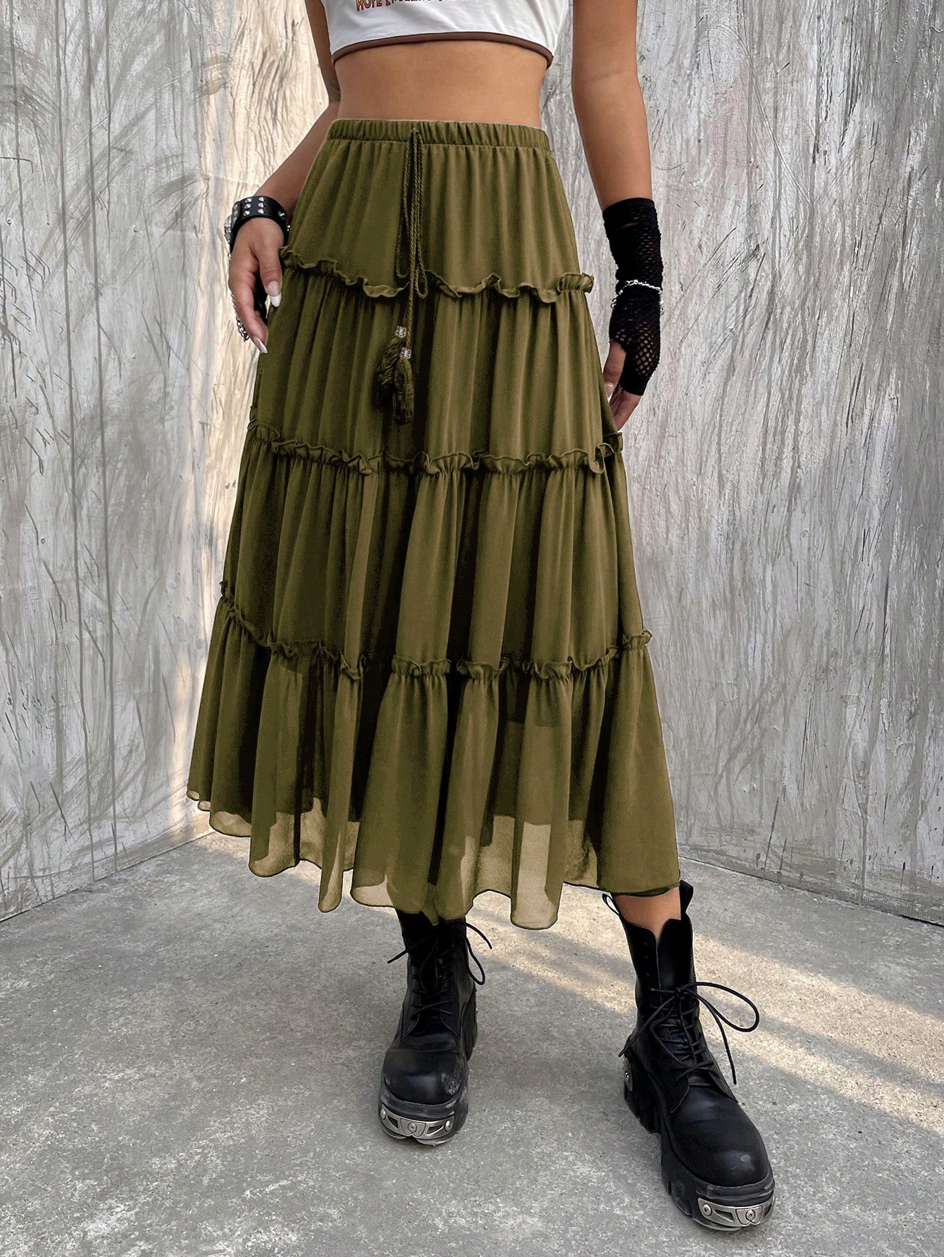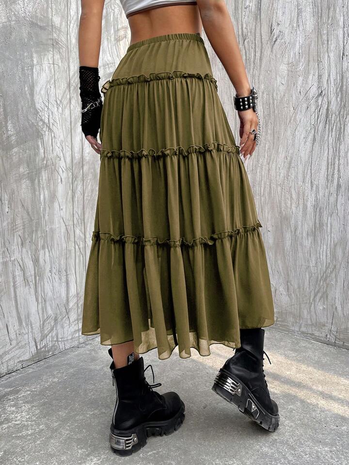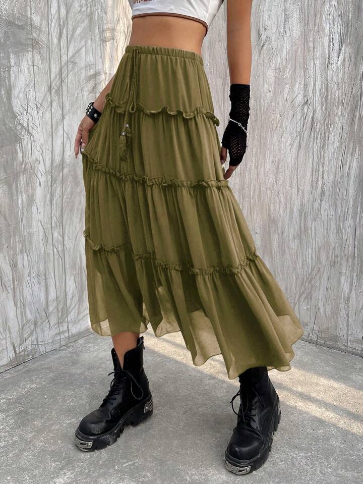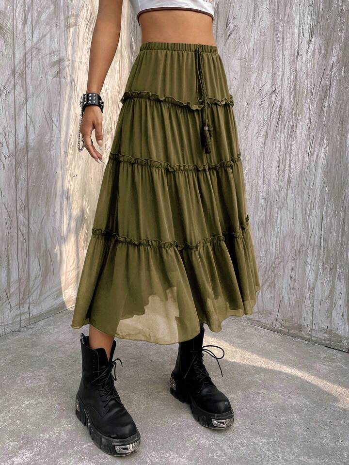 Frill Trim Ruffle Hem Fringe Detail Skirt