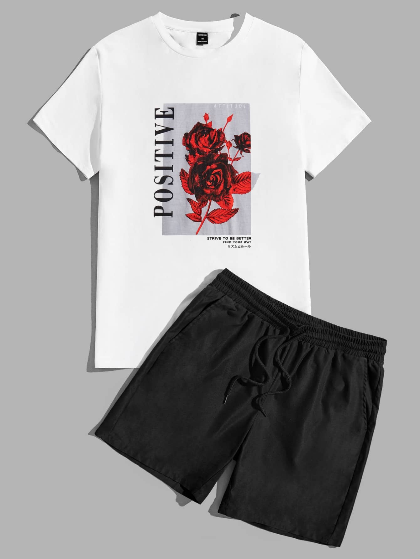 GENTILAND Guys Floral & Slogan Graphic Tee & Shorts
