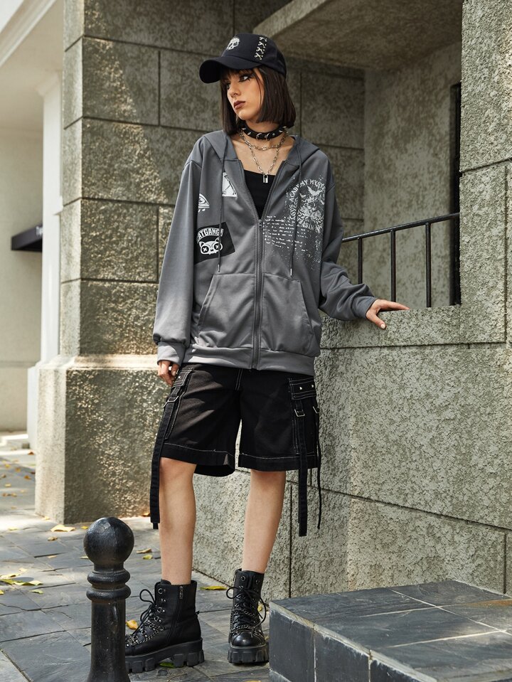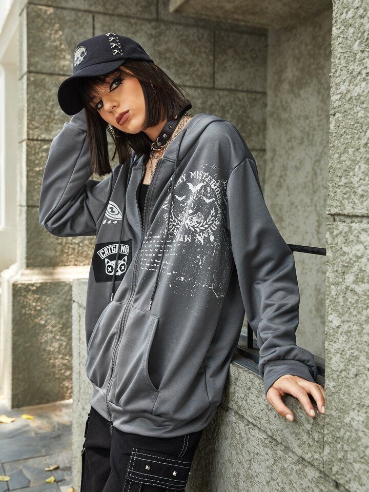 GIMETZCO Street Life Graphic Print Zip Up Hoodie