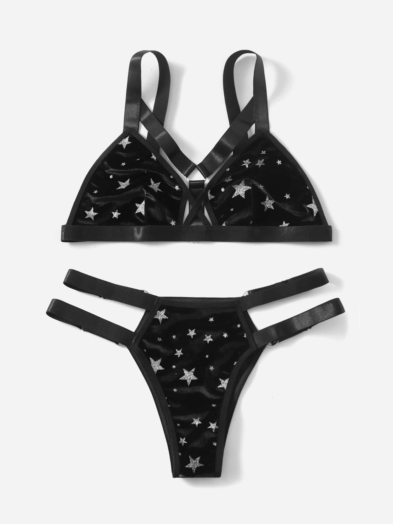 Galaxy Print Cut Out Ring Linked Lingerie Set