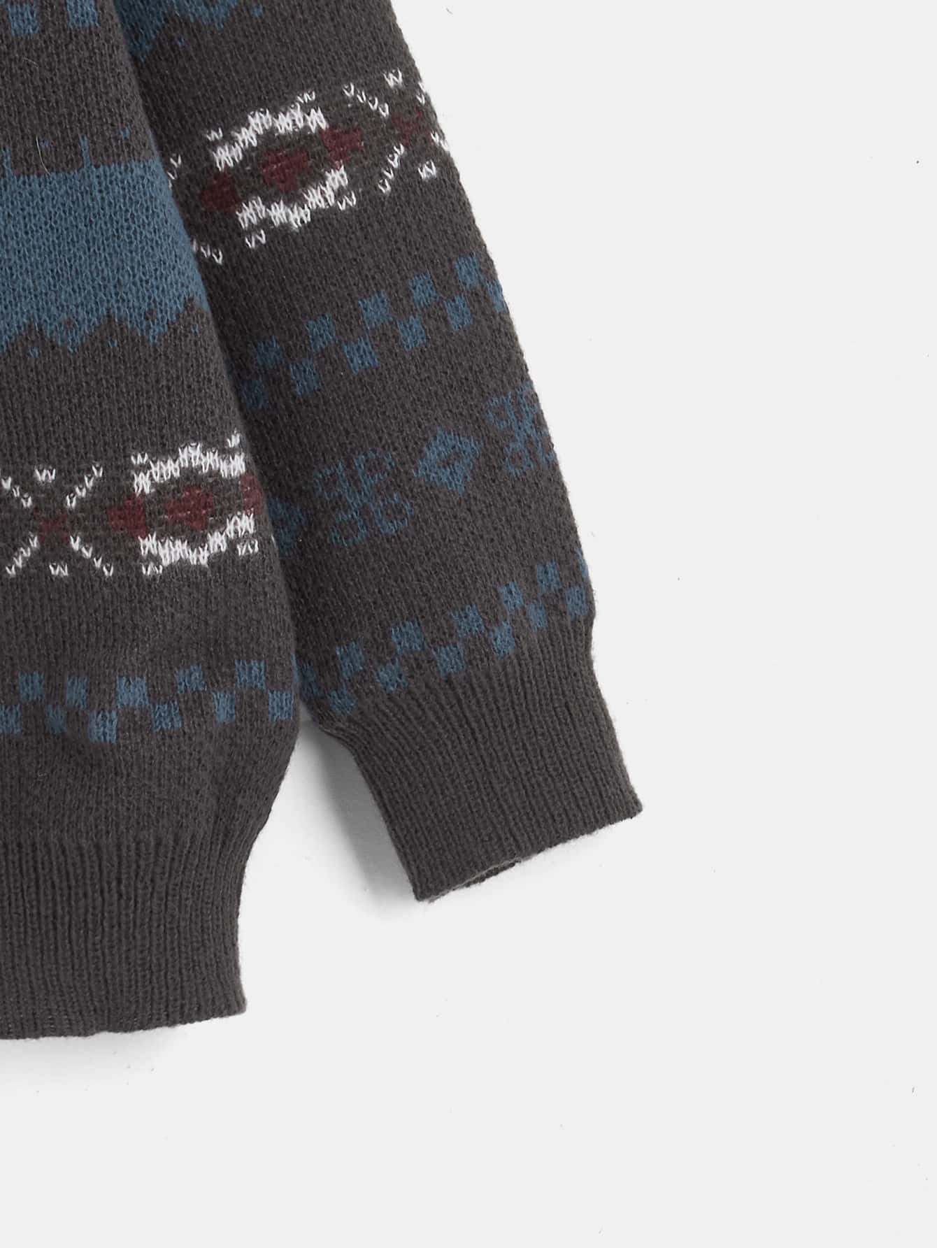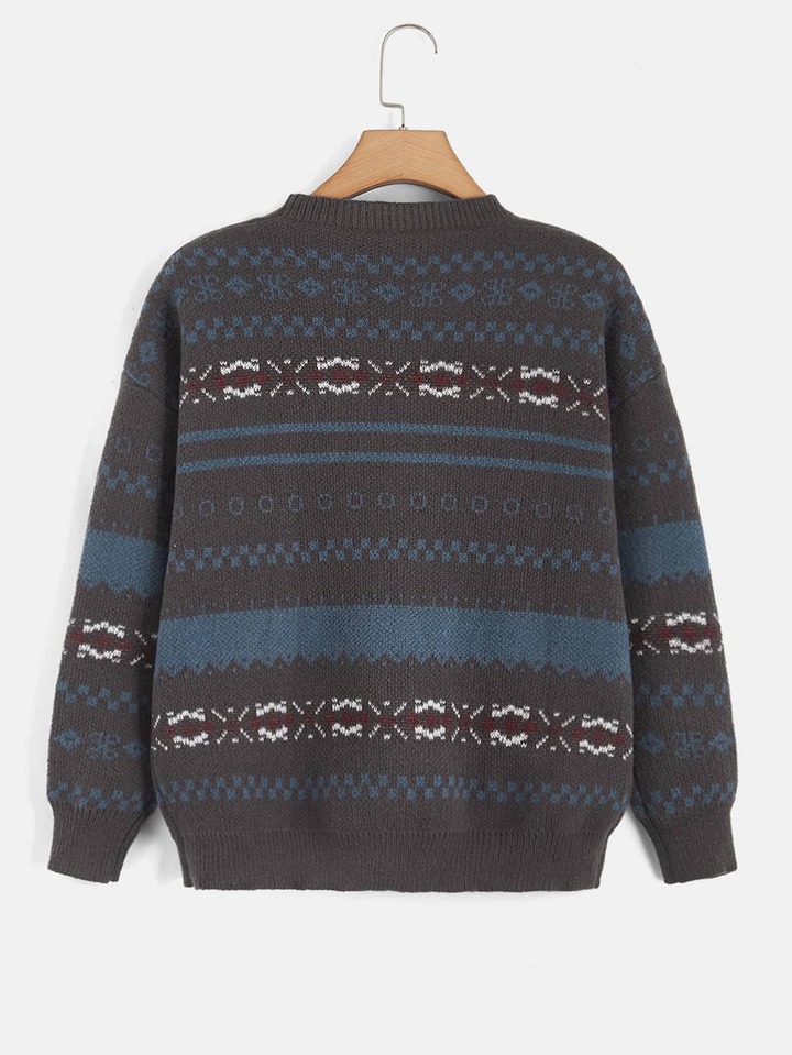 Geo Pattern Drop Shoulder Cardigan