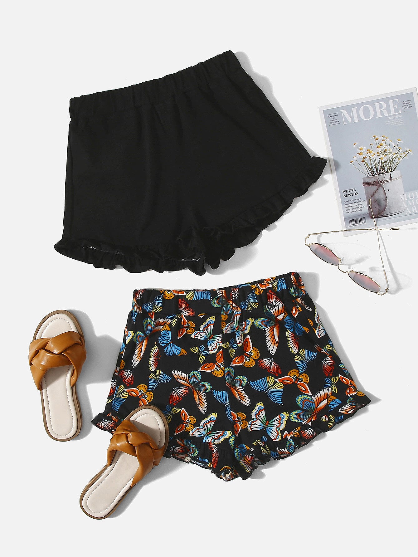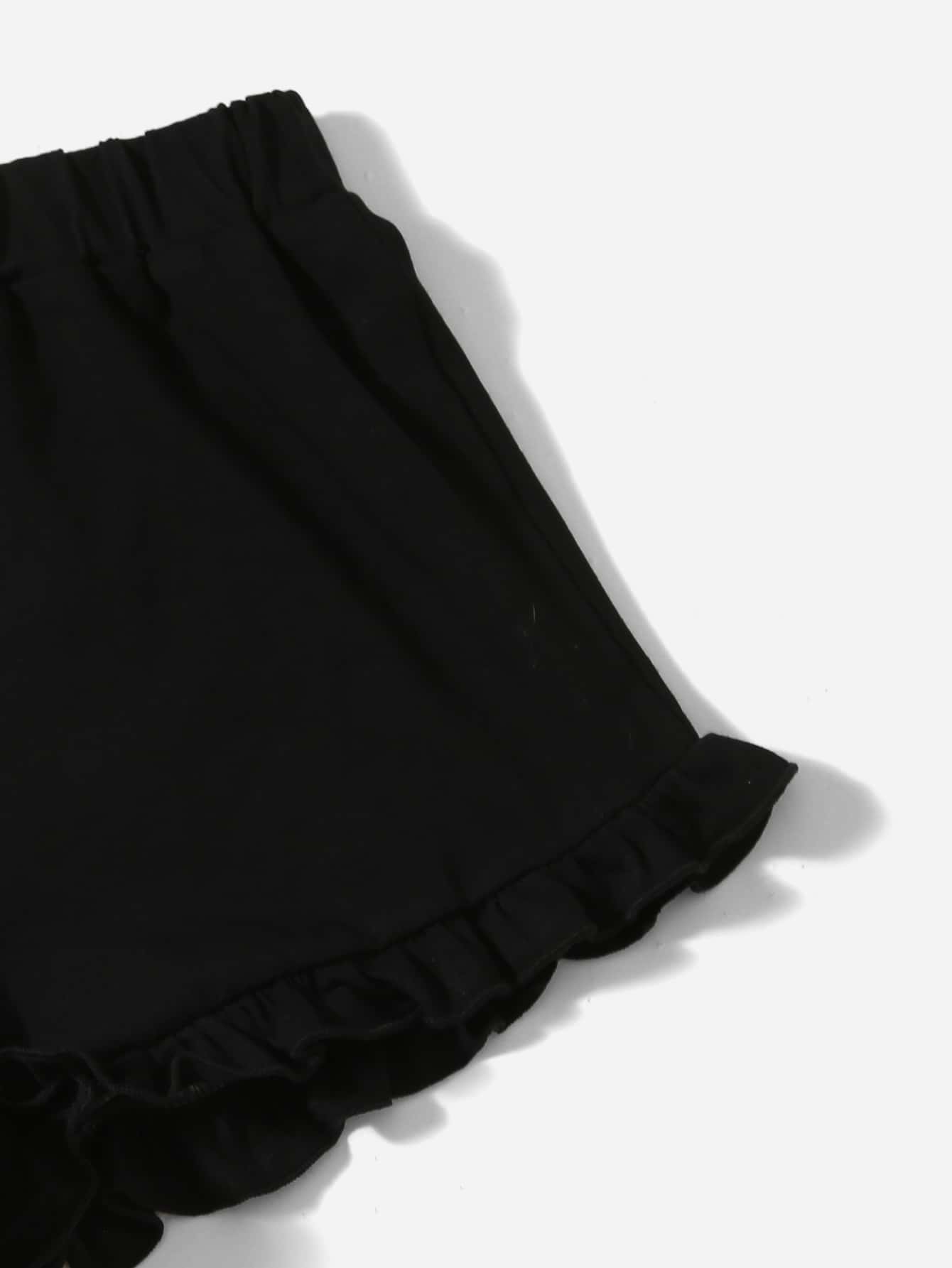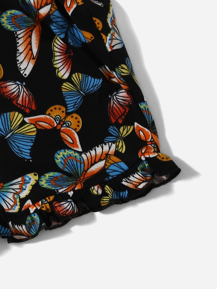 Girls 2pcs Butterfly Print Ruffle Hem Shorts