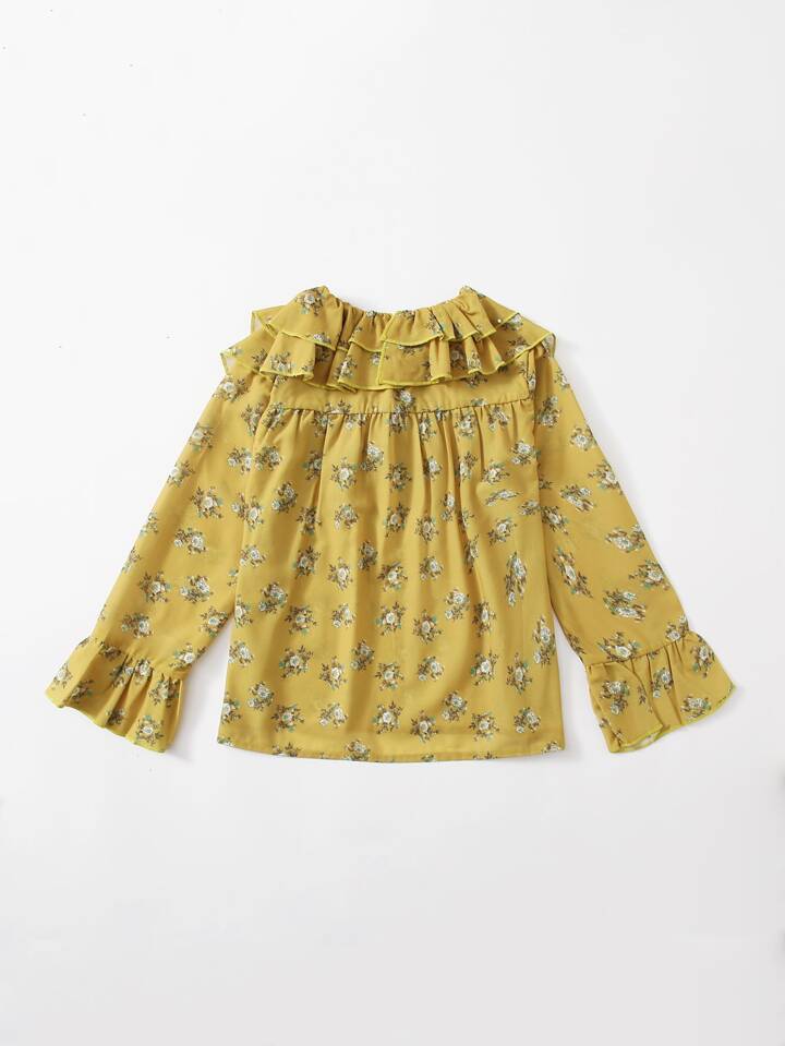 Girls Allover Floral Print Tiered Layer Ruffle Blouse