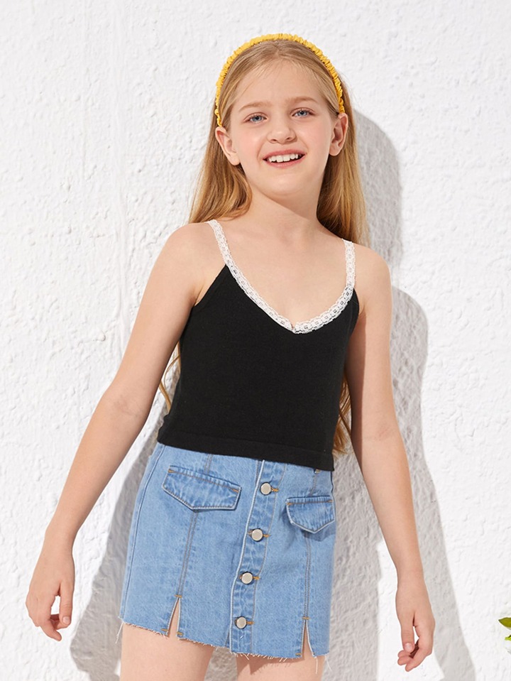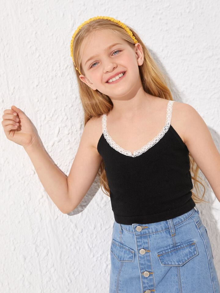 Girls Lace Trim Knit Cami Top