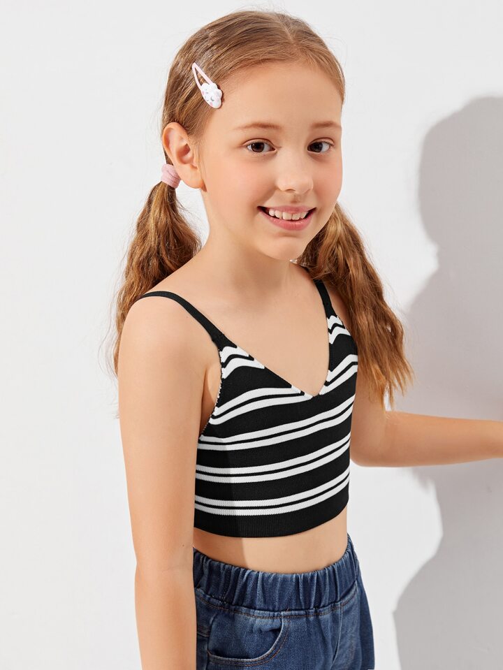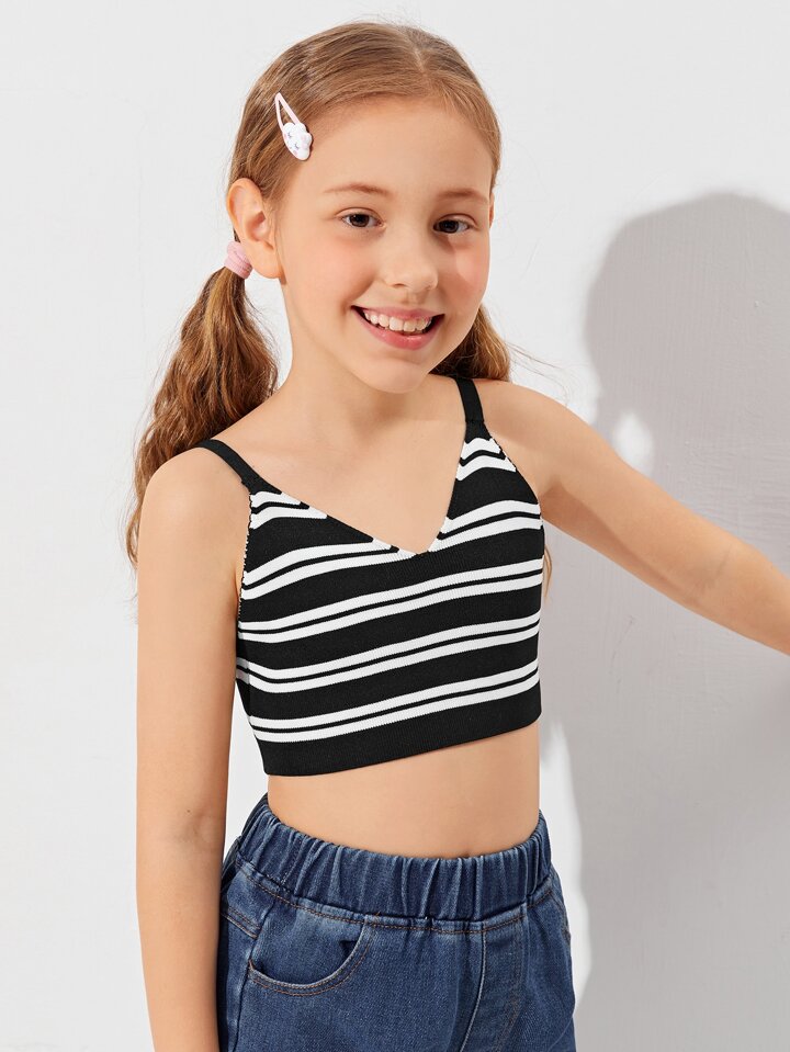 Girls Striped Backless Crop Knit Top