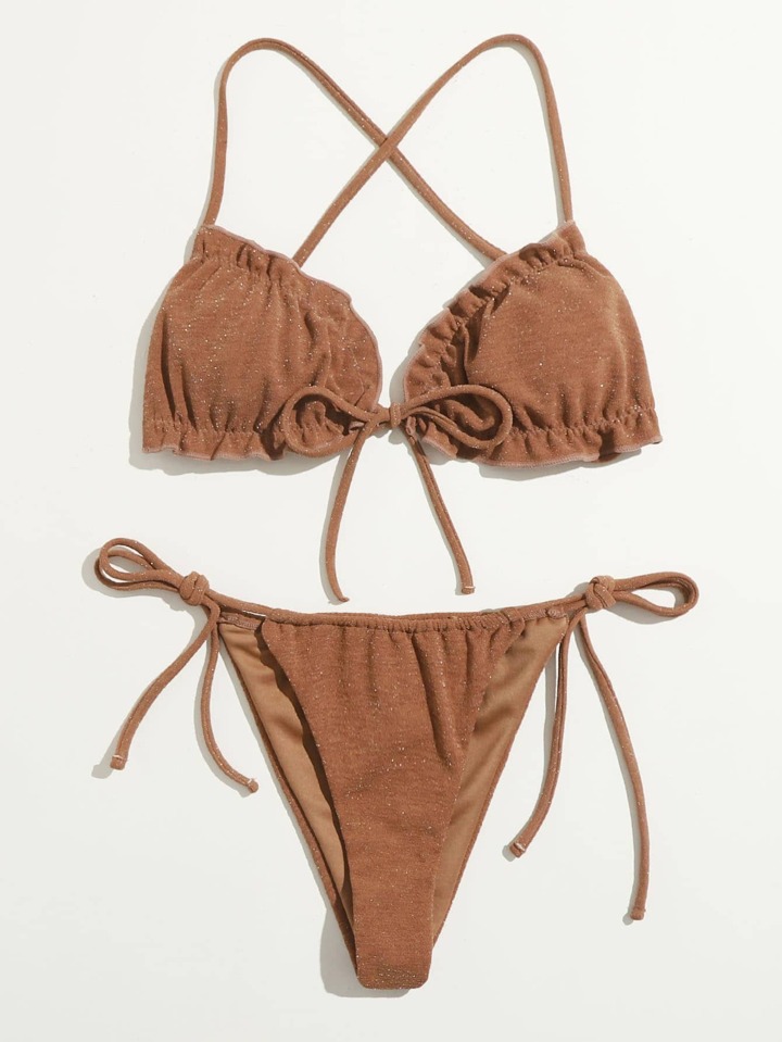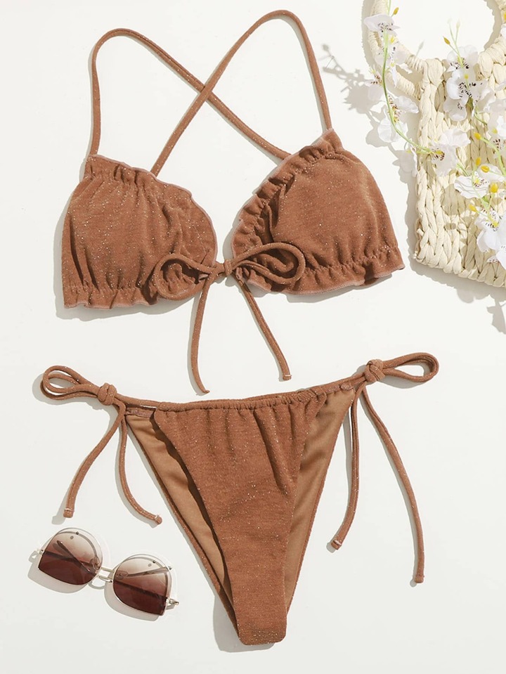 Glitter Frill Tie Side Bikini Set Summer Beach