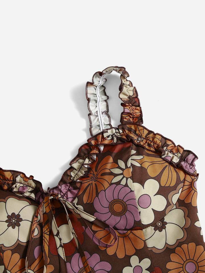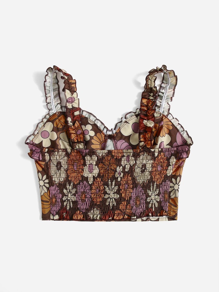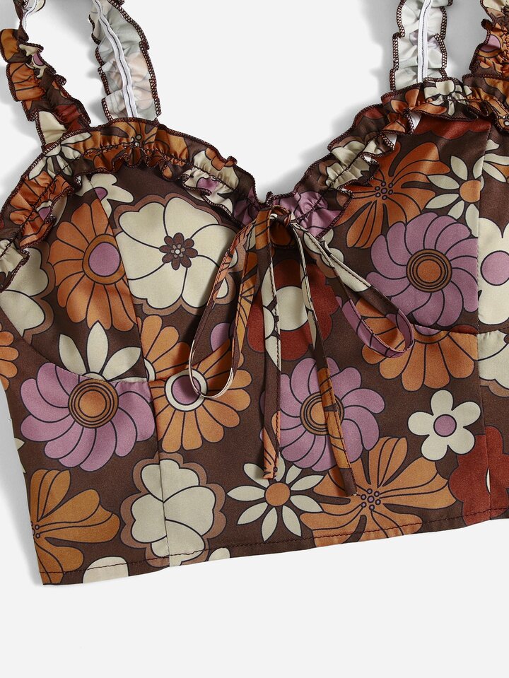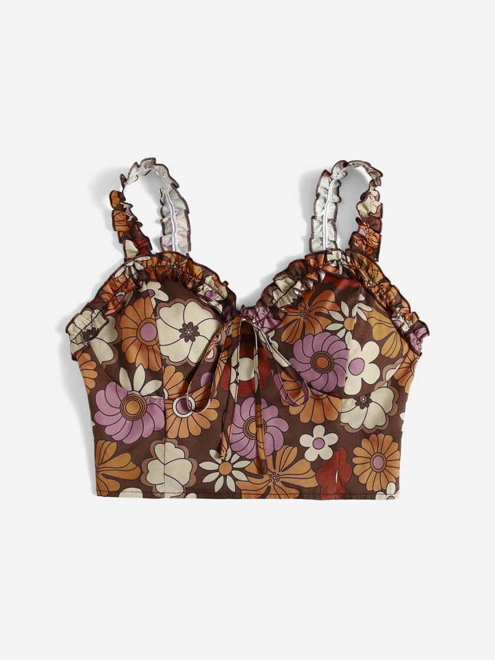 Goldendazeillustration Floral Print Shirred Knot Cami Top