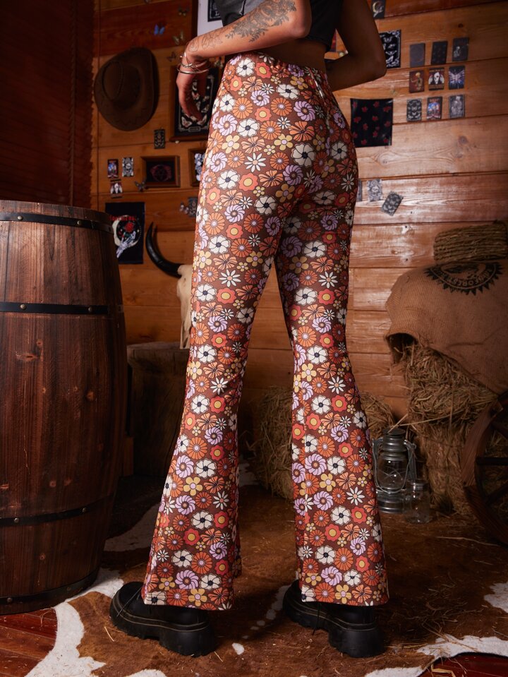 Goldendazeillustration Goth Floral Print Flare Leg Pants