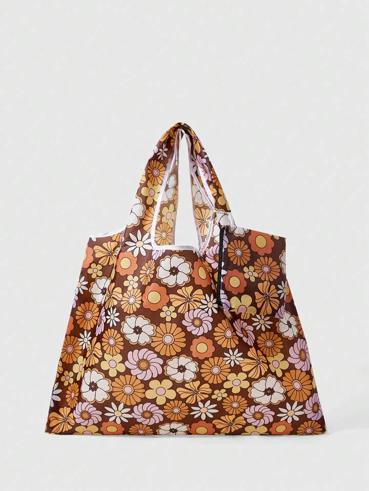 Goldendazeillustration Hippie Foldable Tote Bag With Storage Pouch Design Featuring Floral And Daisy Print