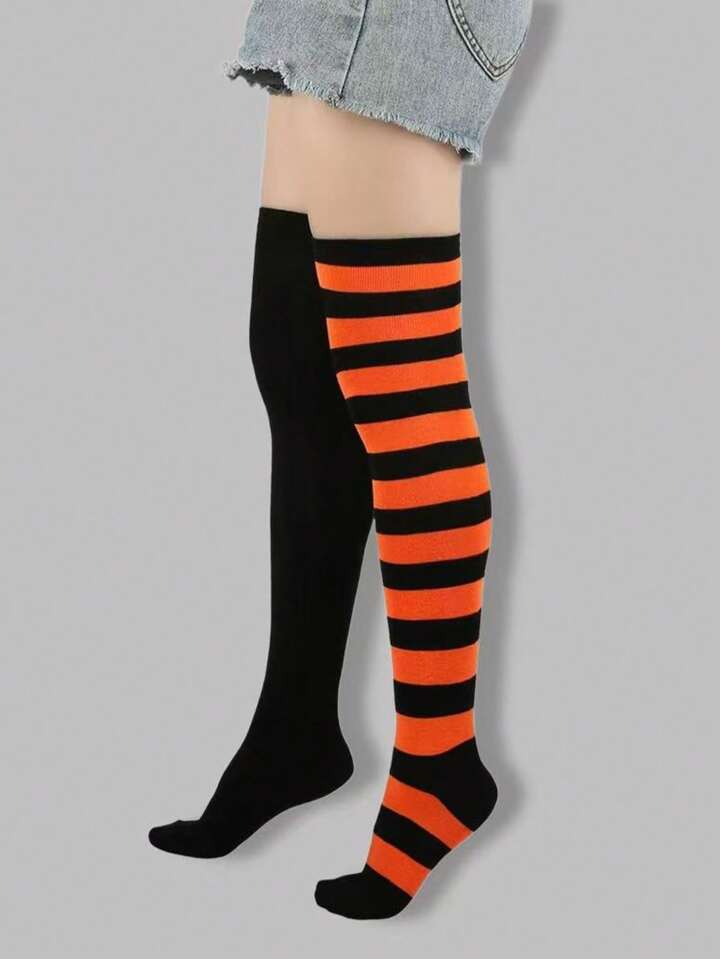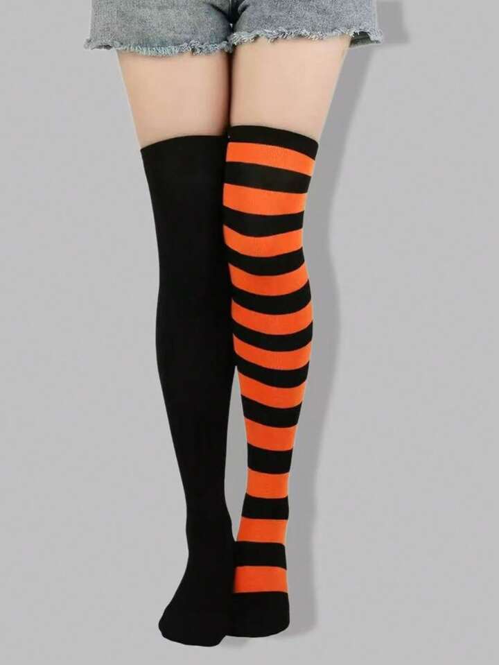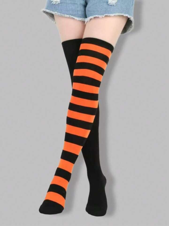 Goth 1 Pair High Elasticity Black Thigh High Socks For Women