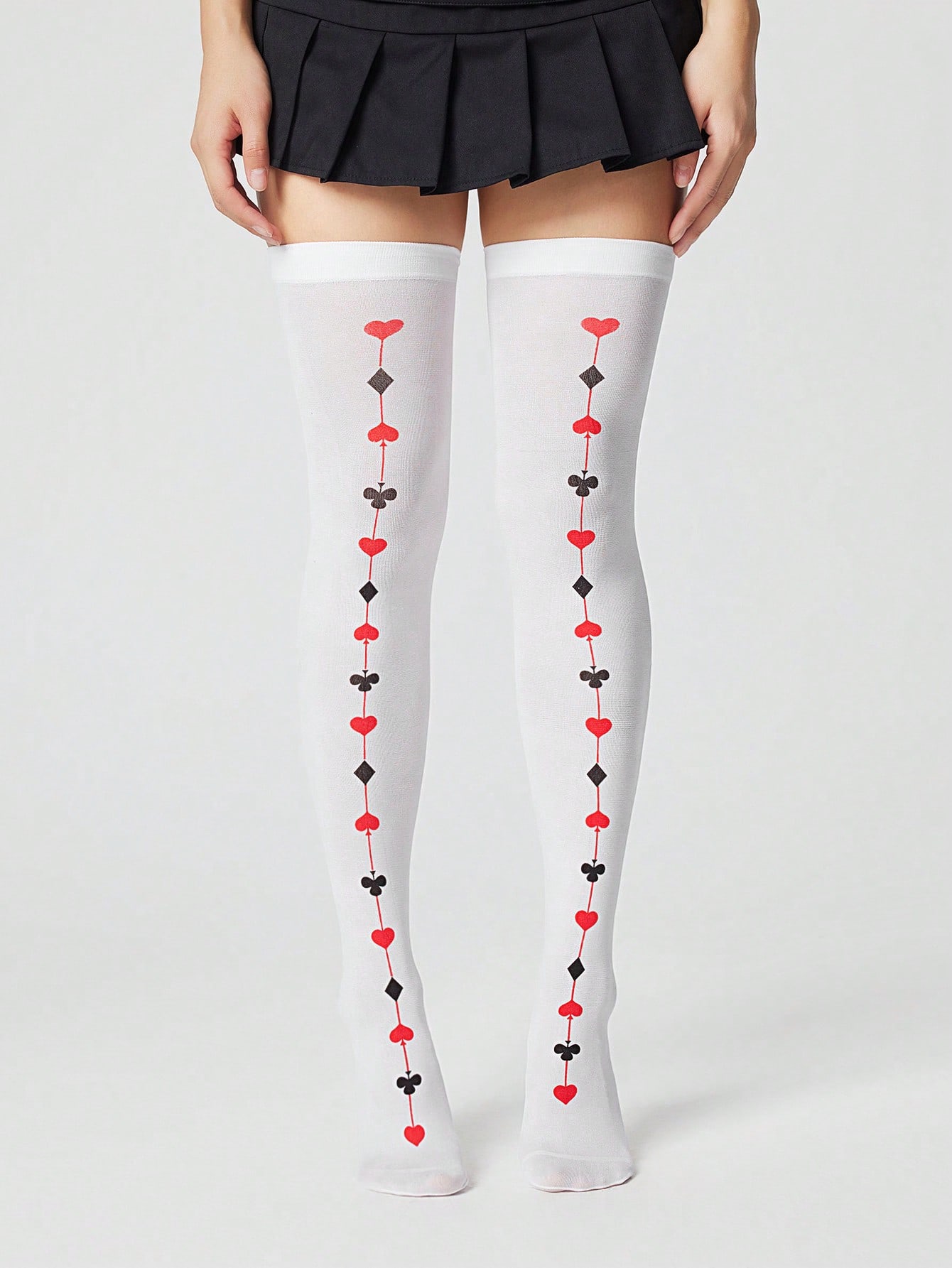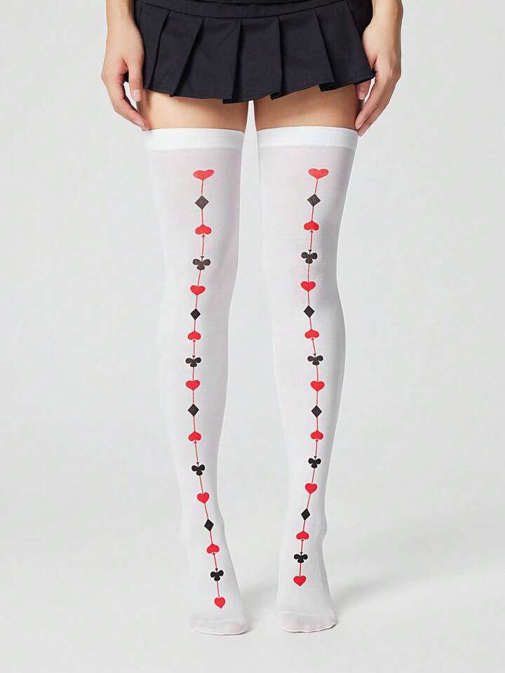 Goth 1 Pair Women's Black Polka Dot Red Over-The-Knee Stockings, All Season