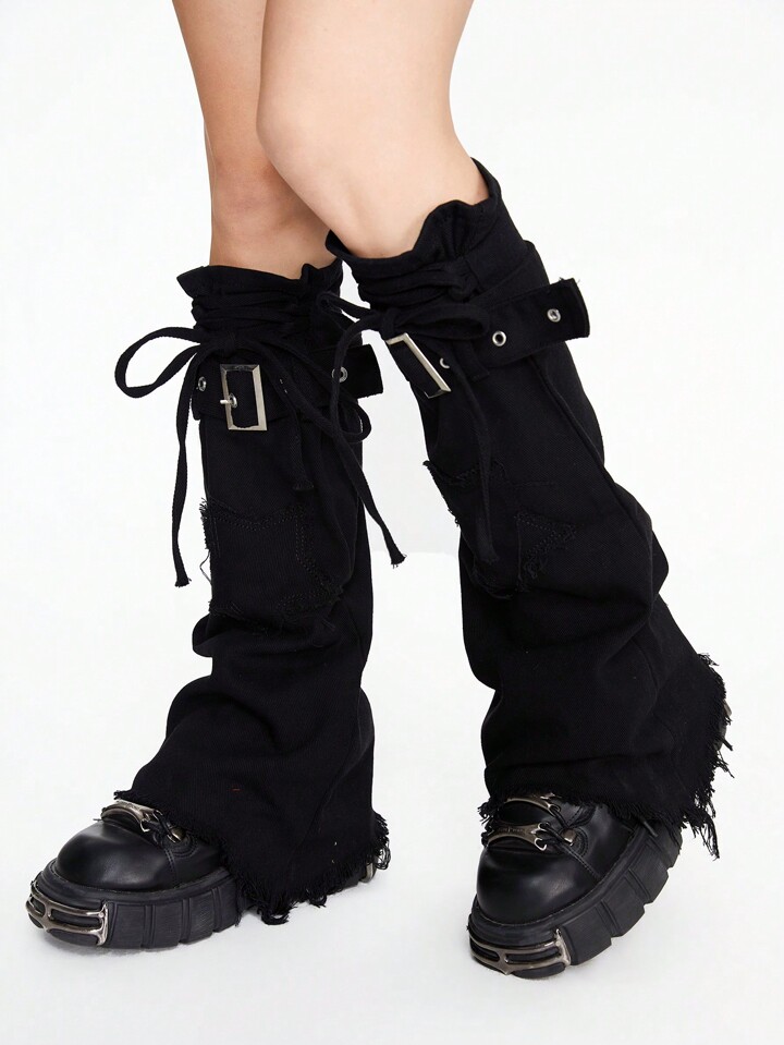Goth 1pair Black Pentagram Vintage Streetwear Leg Warmers For Women