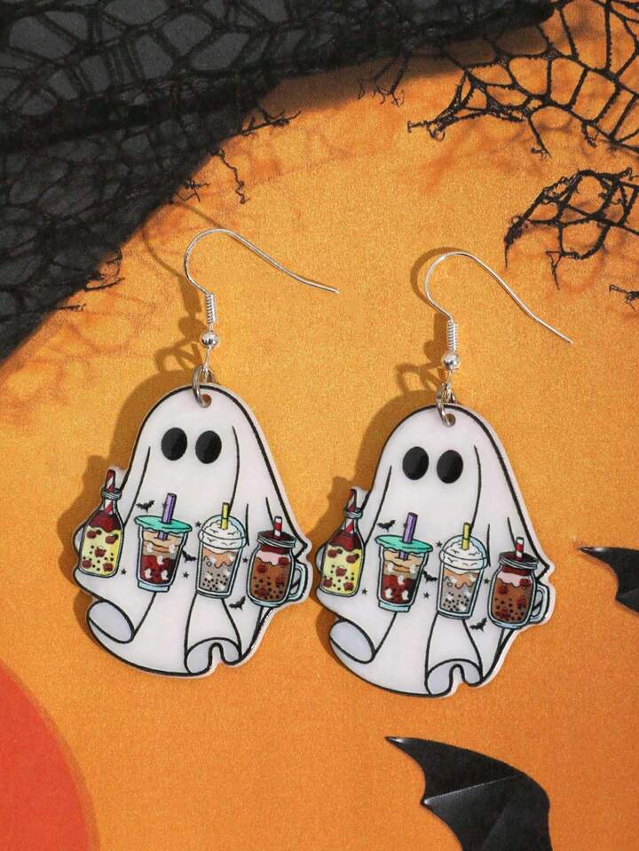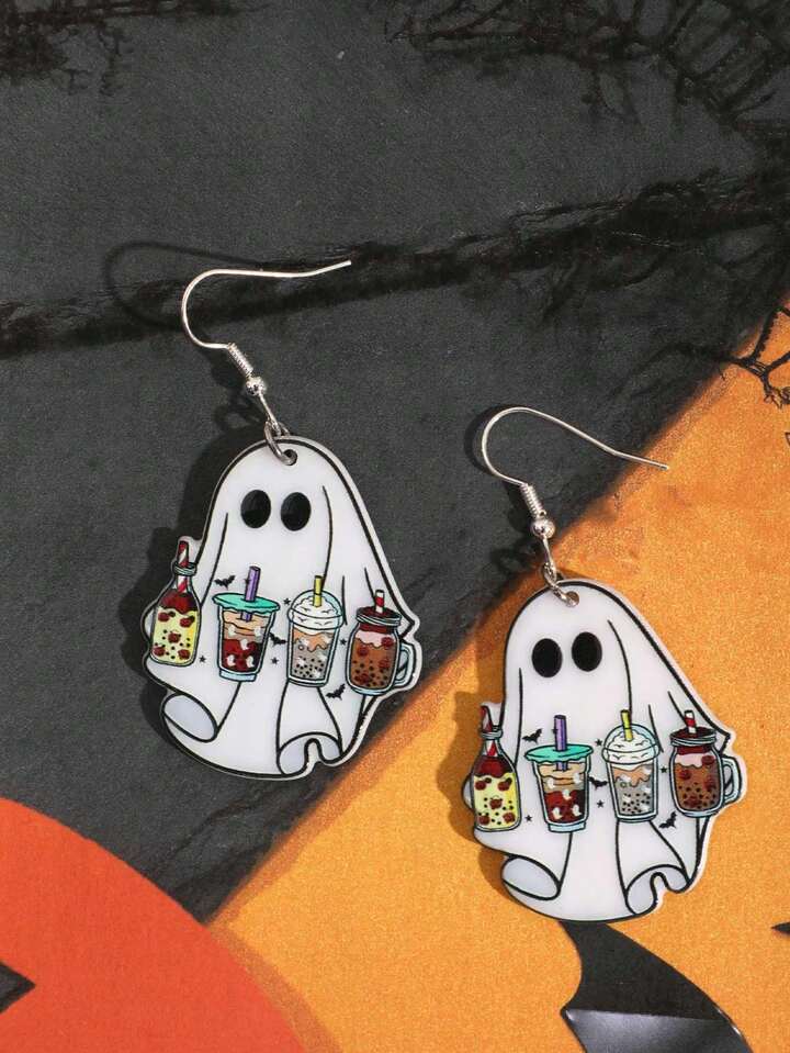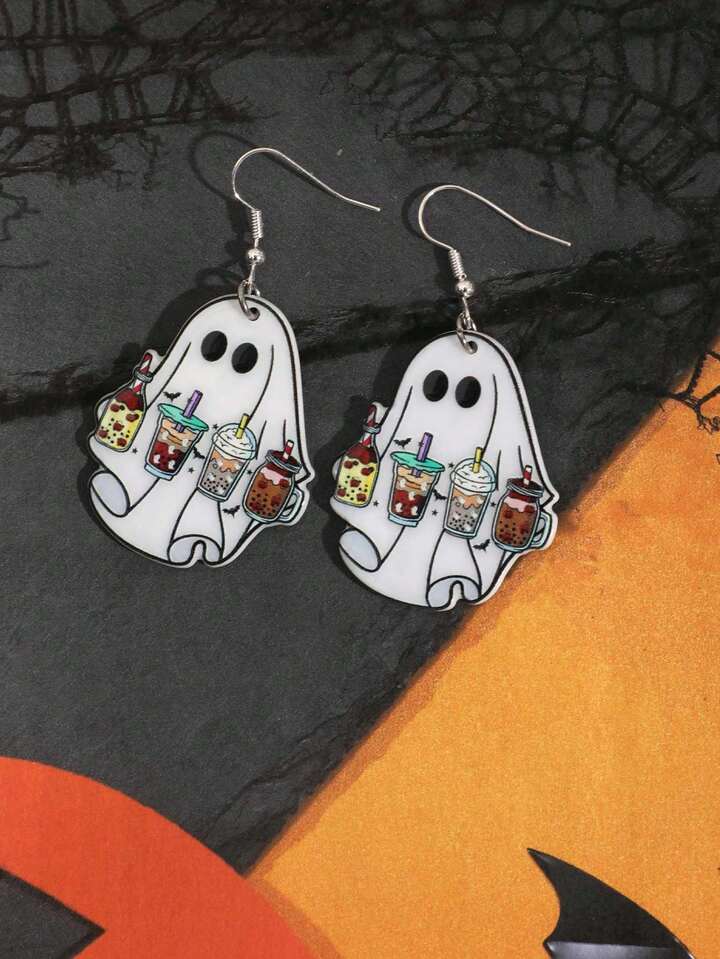 Goth 1pair Cute Acrylic Ghost Drop Earrings For Women For Halloween
