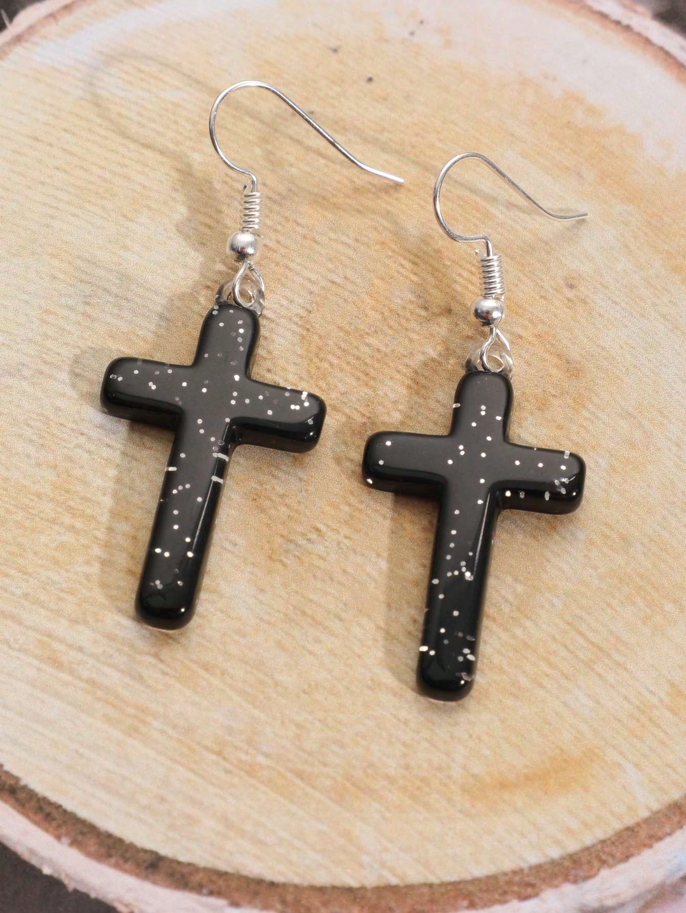 Goth 1pair Fashion Acrylic Cross Design Drop Earrings For Women For Daily Decoration
