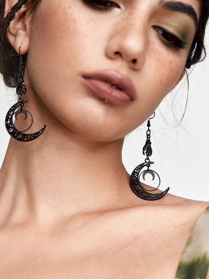 Goth 1pair Fashion Zinc Alloy Moon Decor Drop Earrings For Women For Daily Decoration