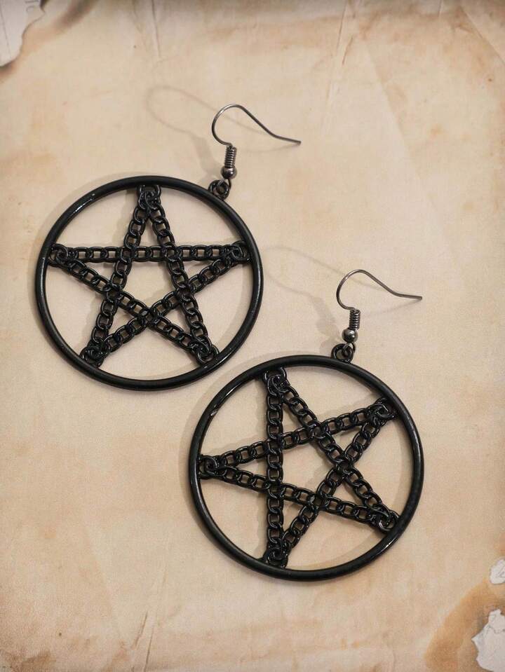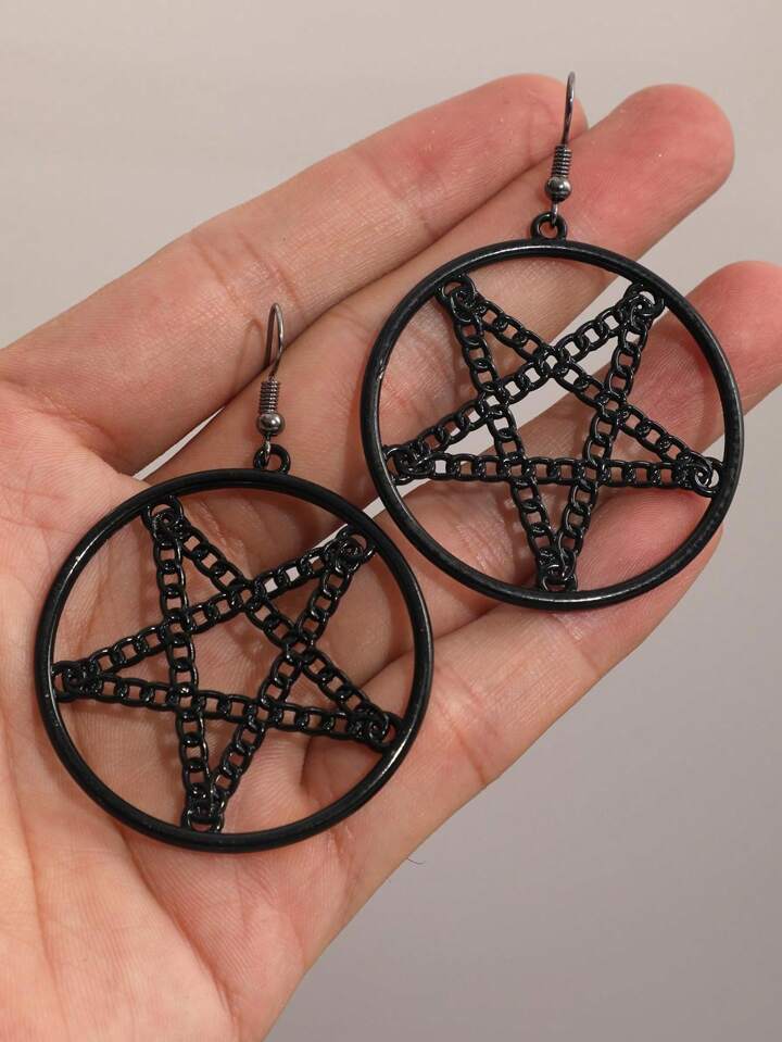 Goth 1pair Fashion Zinc Alloy Star Decor Round Drop Earrings For Women For Daily Decoration