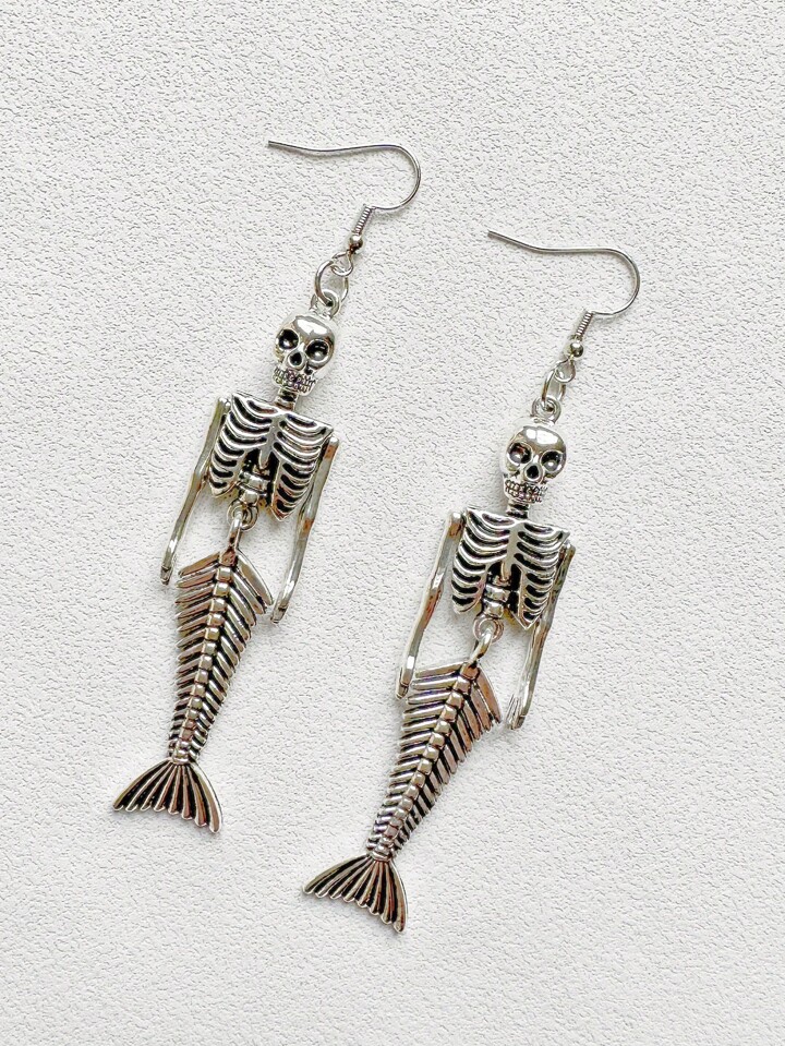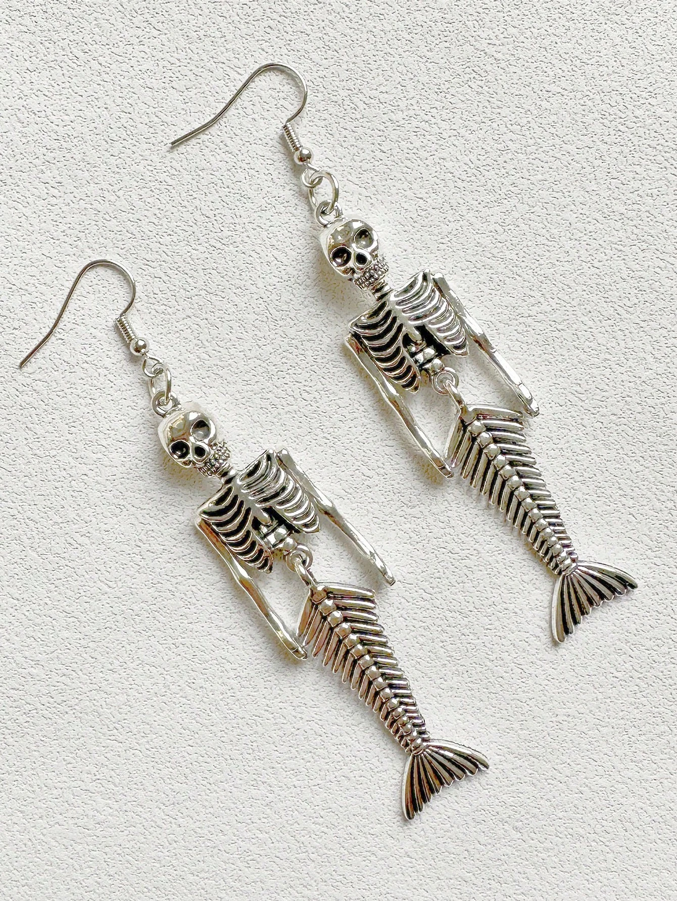 Goth 1pair Funky Zinc Alloy Skeleton Drop Earrings For Women For Daily Decoration