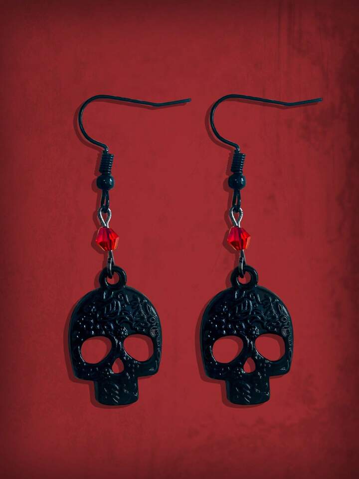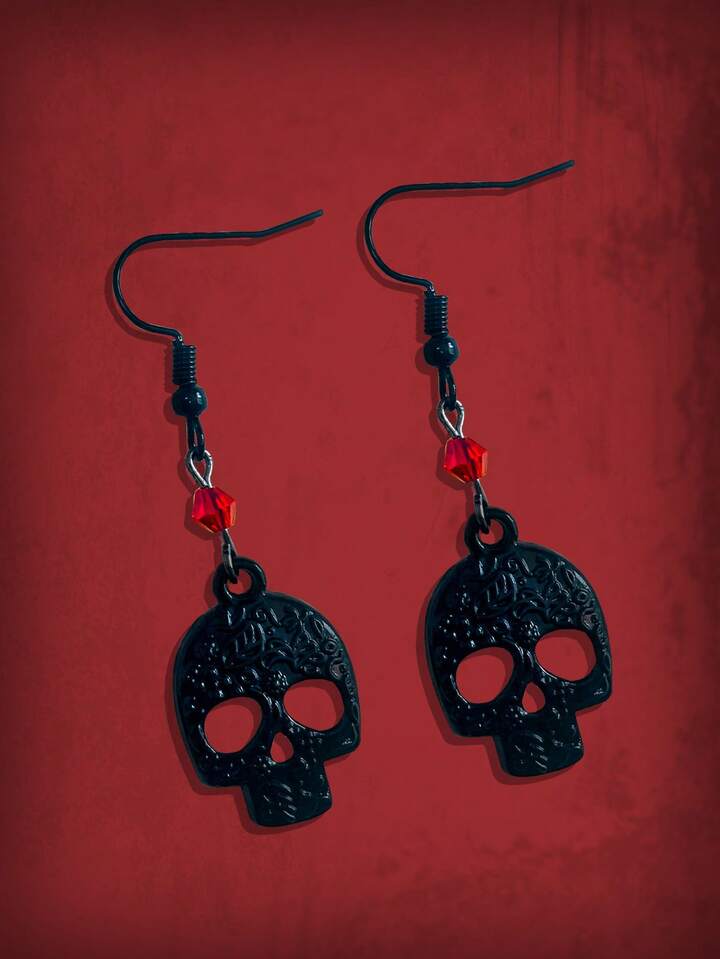 Goth 1pair Funky Zinc Alloy Skull Drop Earrings For Women For Daily Decoration