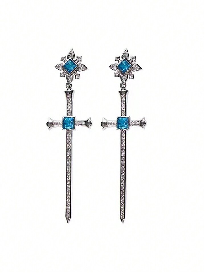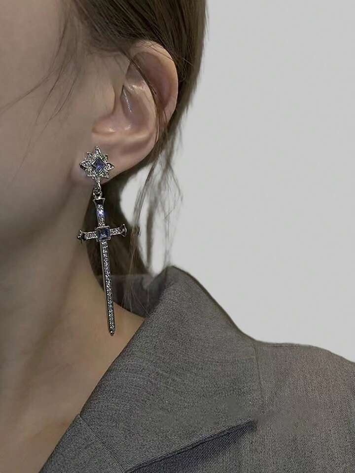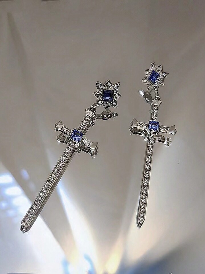 Goth 1pair Glamorous Iron Alloy Rhinestone Decor Sword Drop Earrings For Women For Dating Gift