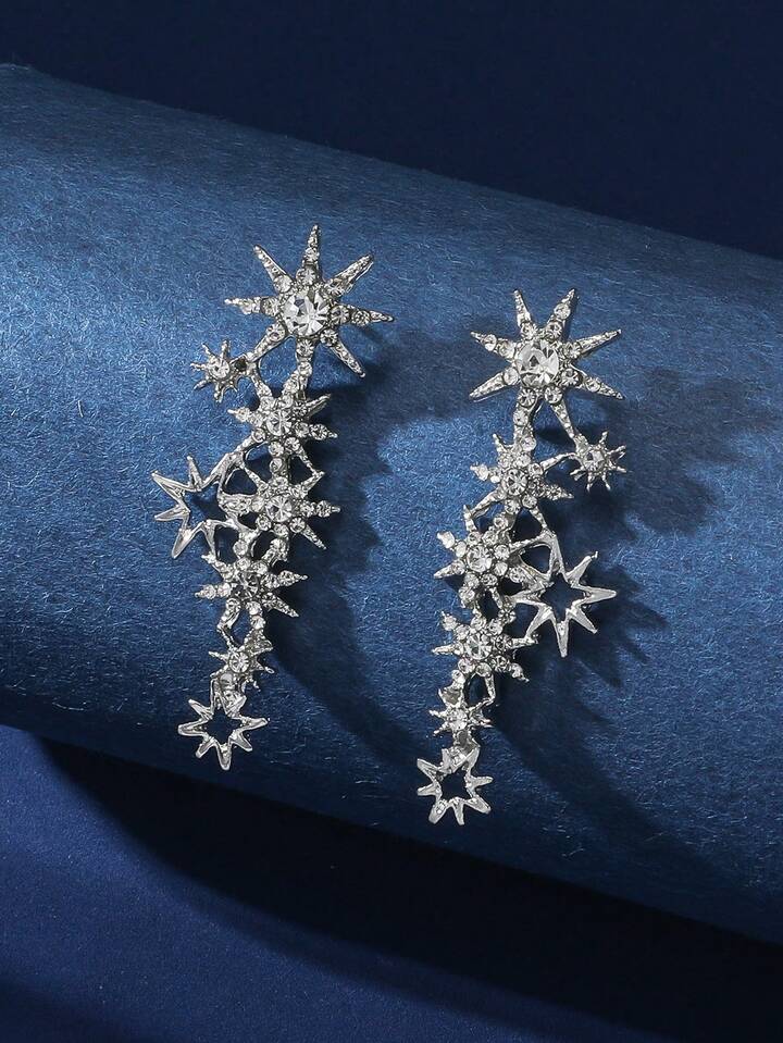 Goth 1pair Glamorous Zinc Alloy Rhinestone Star Decor Earrings For Women For Daily Decoration