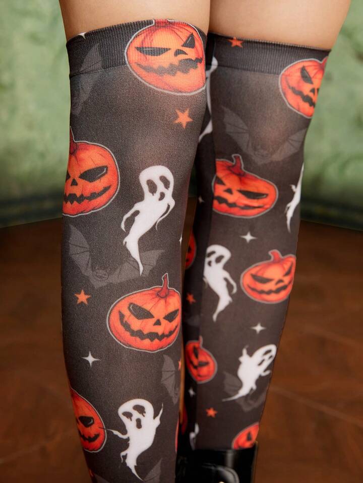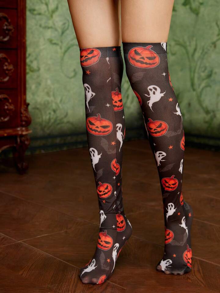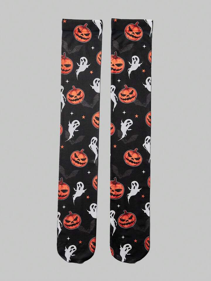 Goth 1pair Women Halloween Print Over The Knee Socks