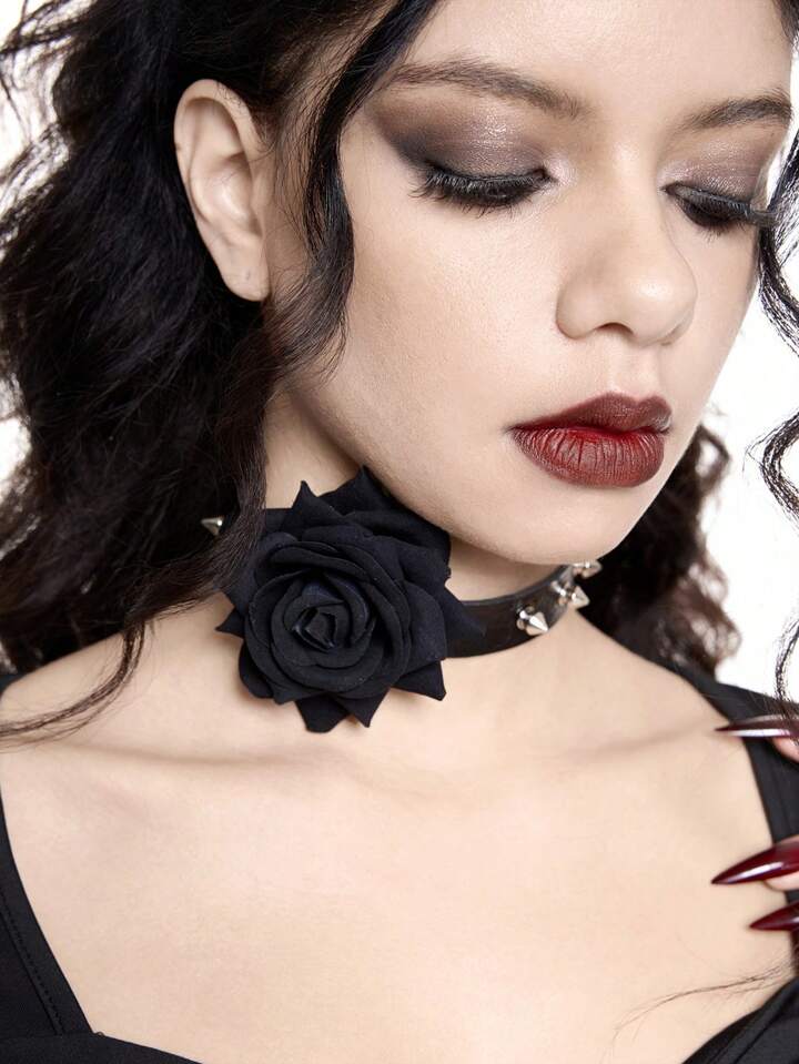 Goth 1pc Black Floral Skull Nail Leg Bracelet / Anklet