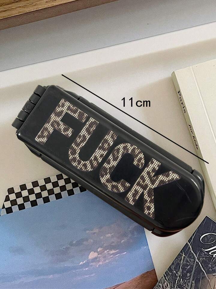 Goth 1pc Black Letter Print Folding Comb With Mirror, Compact Portable Brush Comb All-In-One (Pattern Placement Random)
