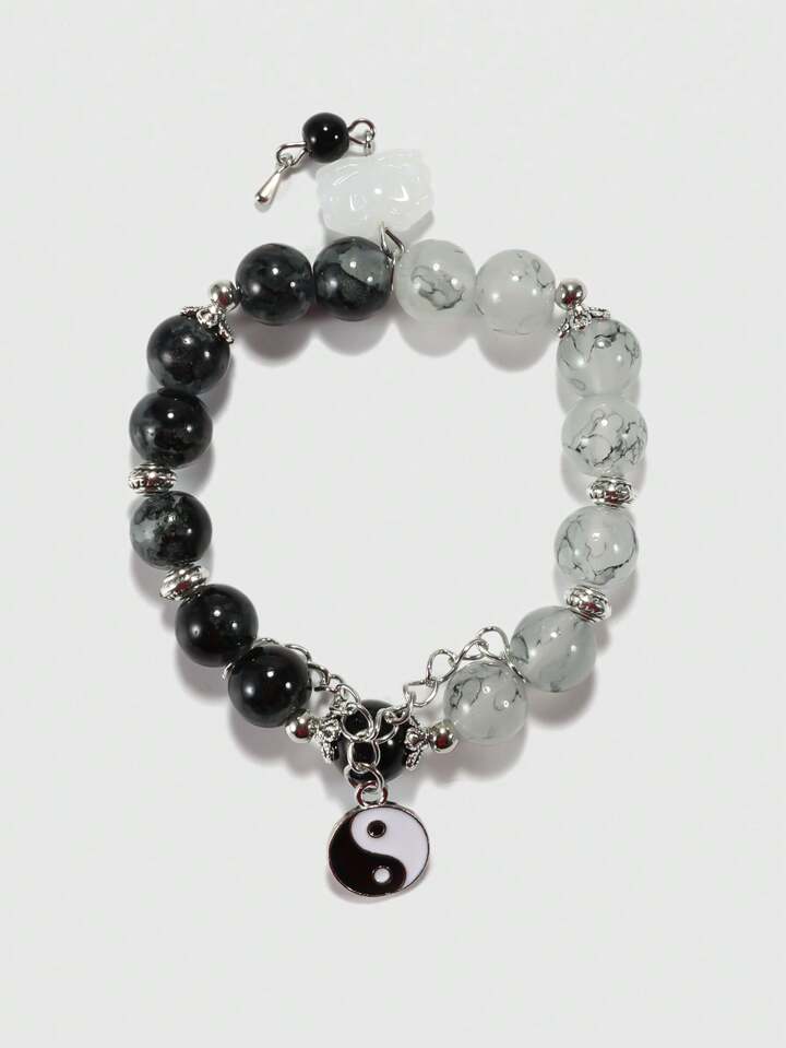 Goth 1pc Black & White Tai Chi Yin Yang Beads Bracelet For Women, Perfect For Valentine's Day Gift