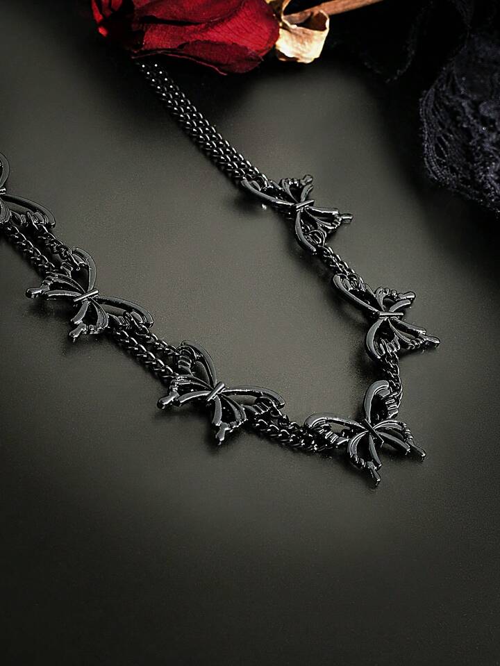 Goth 1pc Fashion Iron Alloy Butterfly Decor Layered Necklace For Women For Daily Decoration